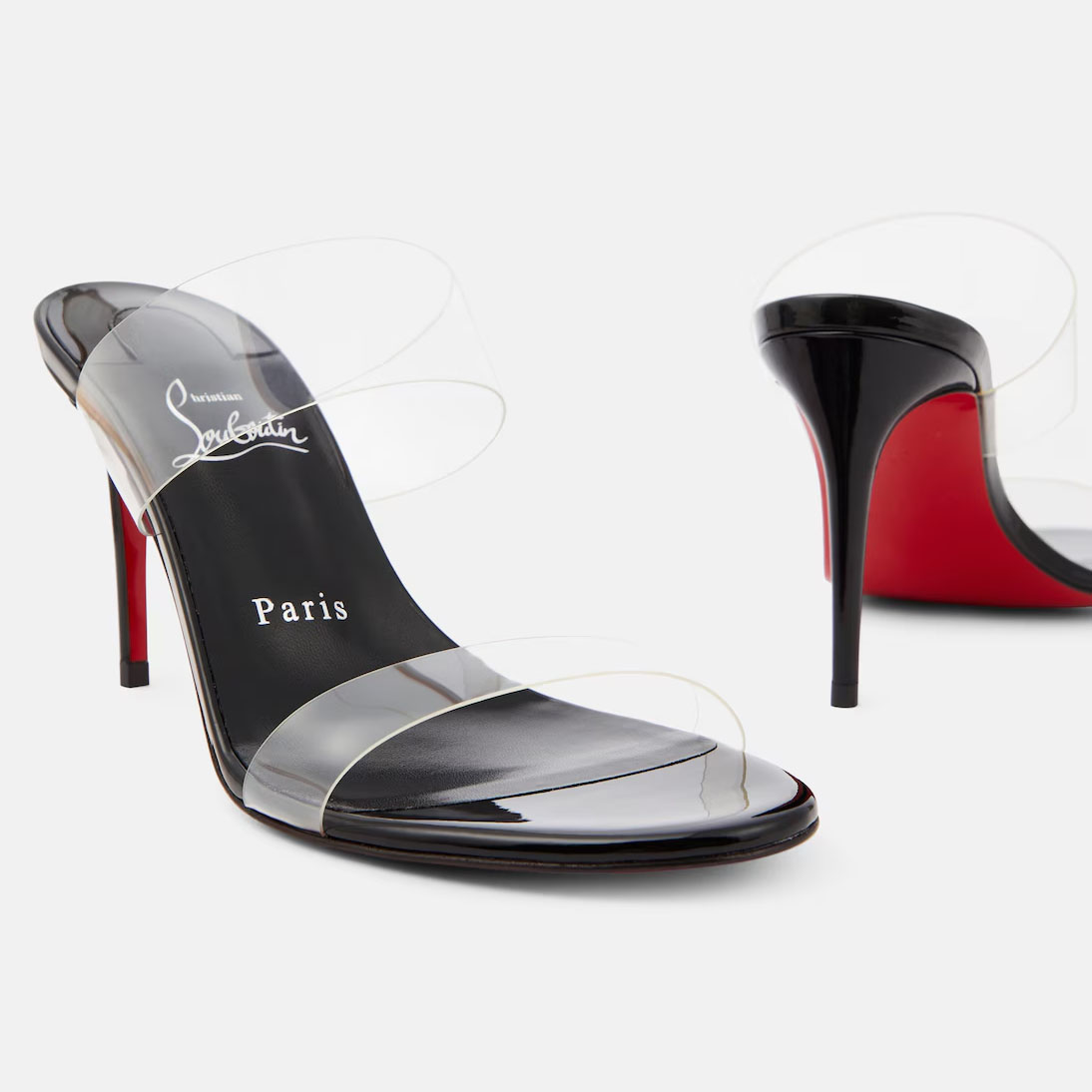 Christian Louboutin Black leather and pvc fabric high-heeled slippers