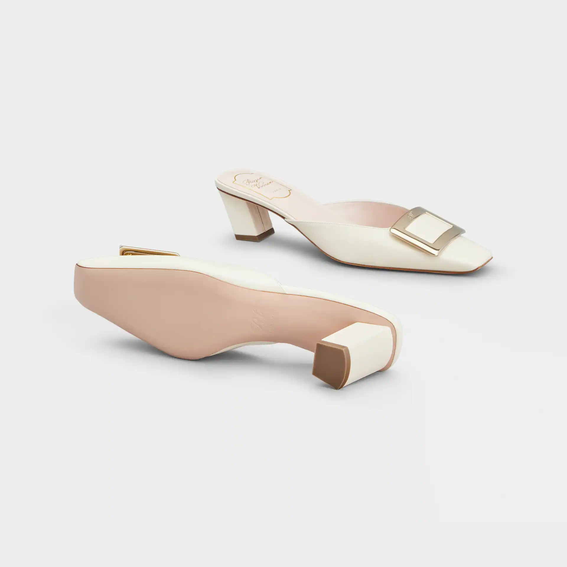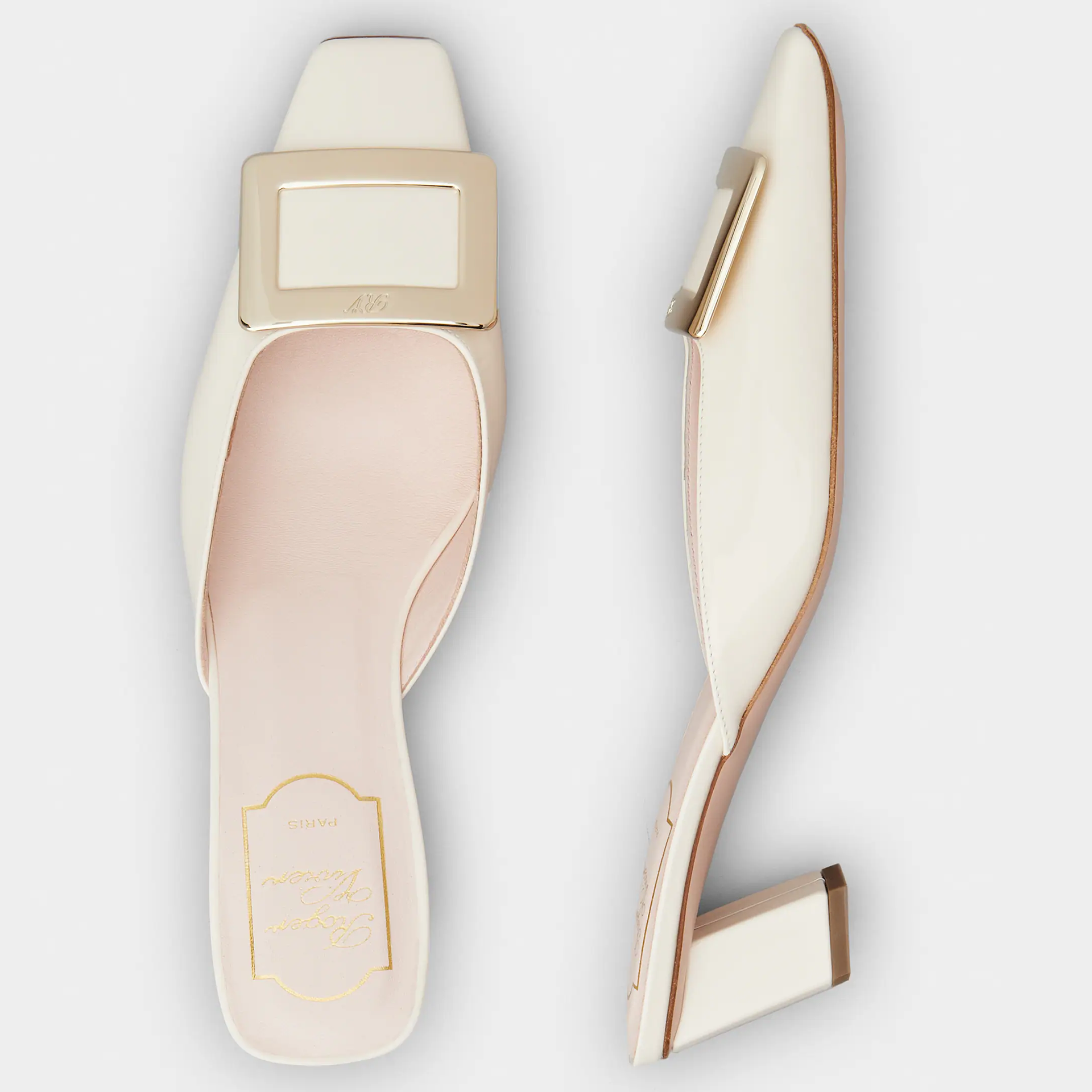 • Roger Vivier Belle Vivier Mules Sandals In White Patent Leather With Metal Buckle (Heel Height 4.5cm)