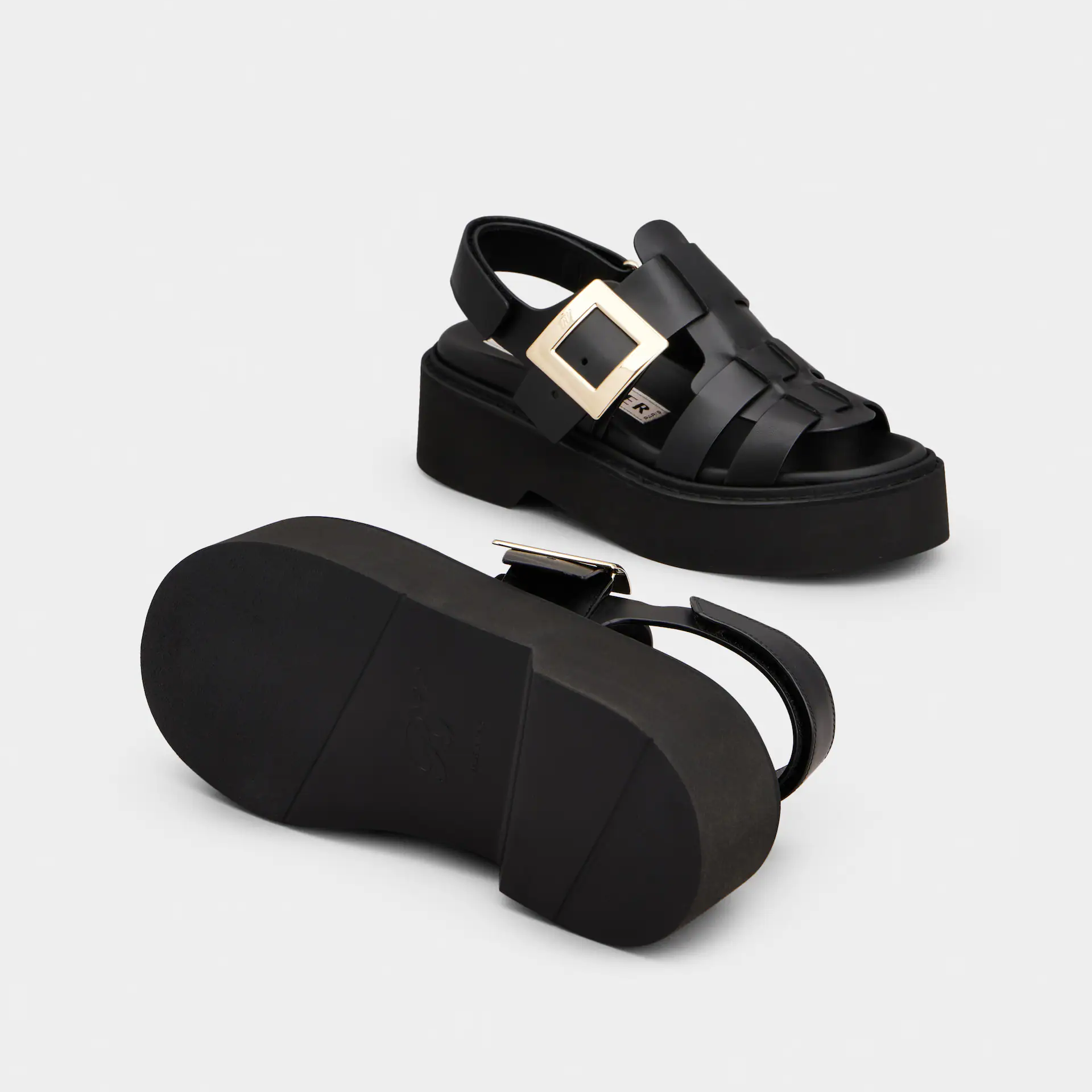 Roger Vivier Viv�� Rangers Sandals In Black Leather With Metal Buckle