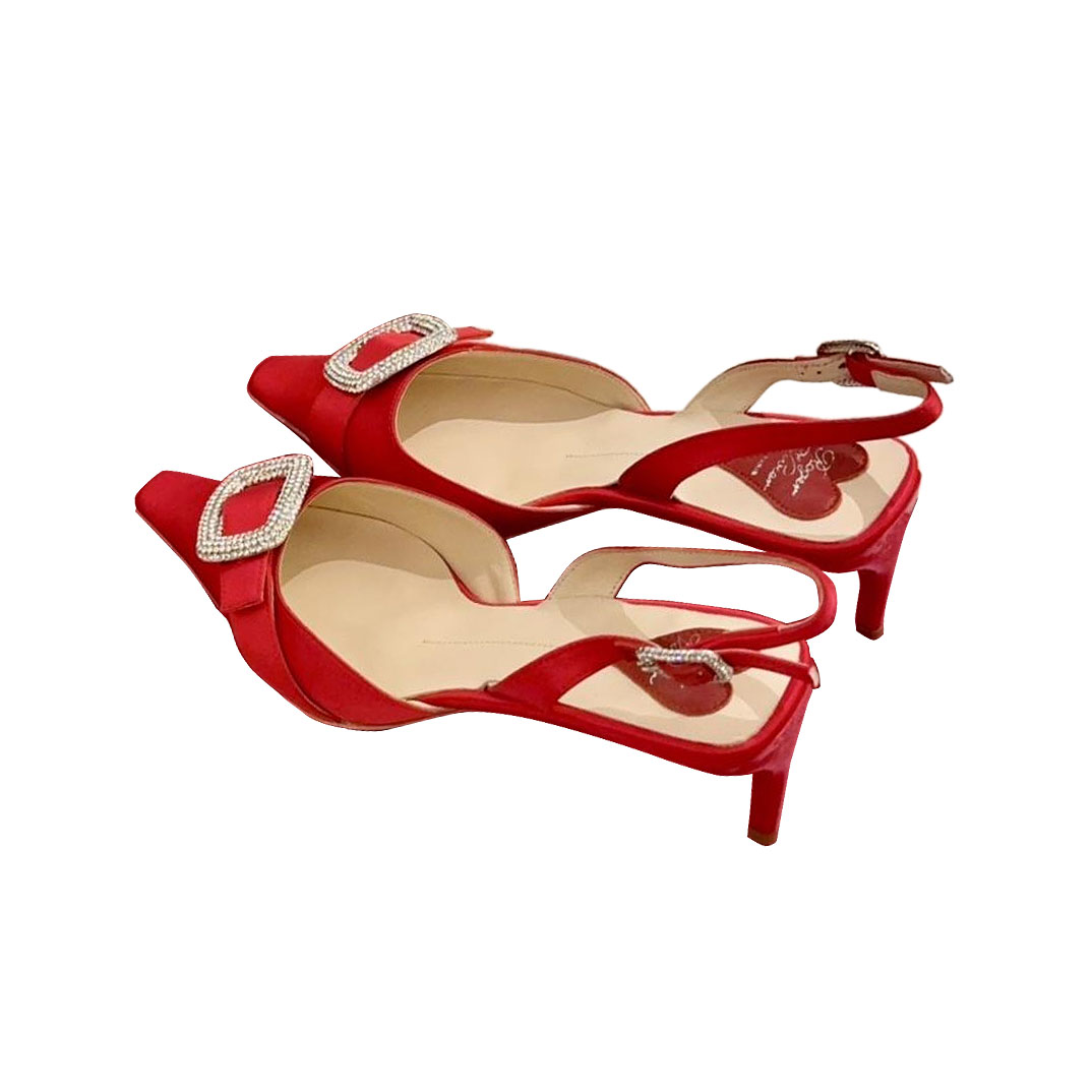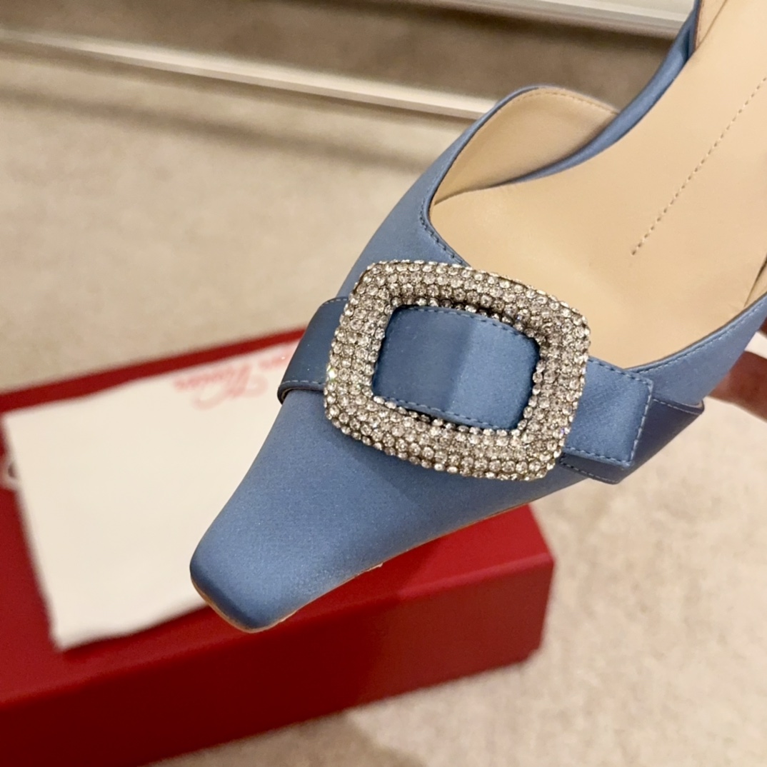 Roger Vivier Viv��Canard Pumps High Heels In Red/Black/Blue/Purple Satin With Crystal Buckle (Heel Height 5.5cm)