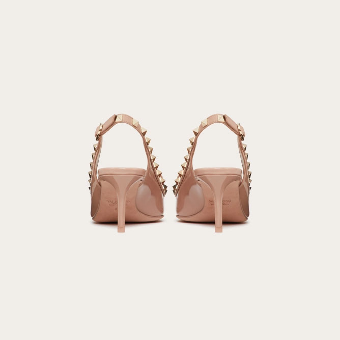 VALENTINO Lace-up heels in patent leather with rivet bow in the same color (heel height: 6cm)
