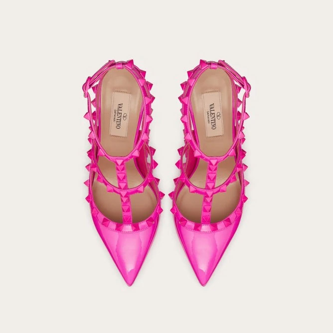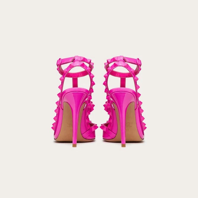 VALENTINO Patent leather lace-up rivet heels