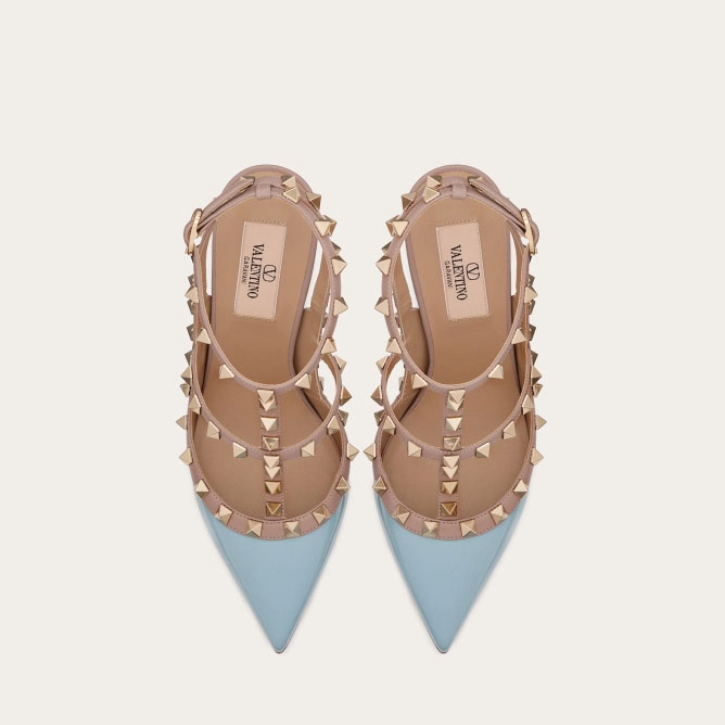 VALENTINO Patent leather lace-up rivet heels