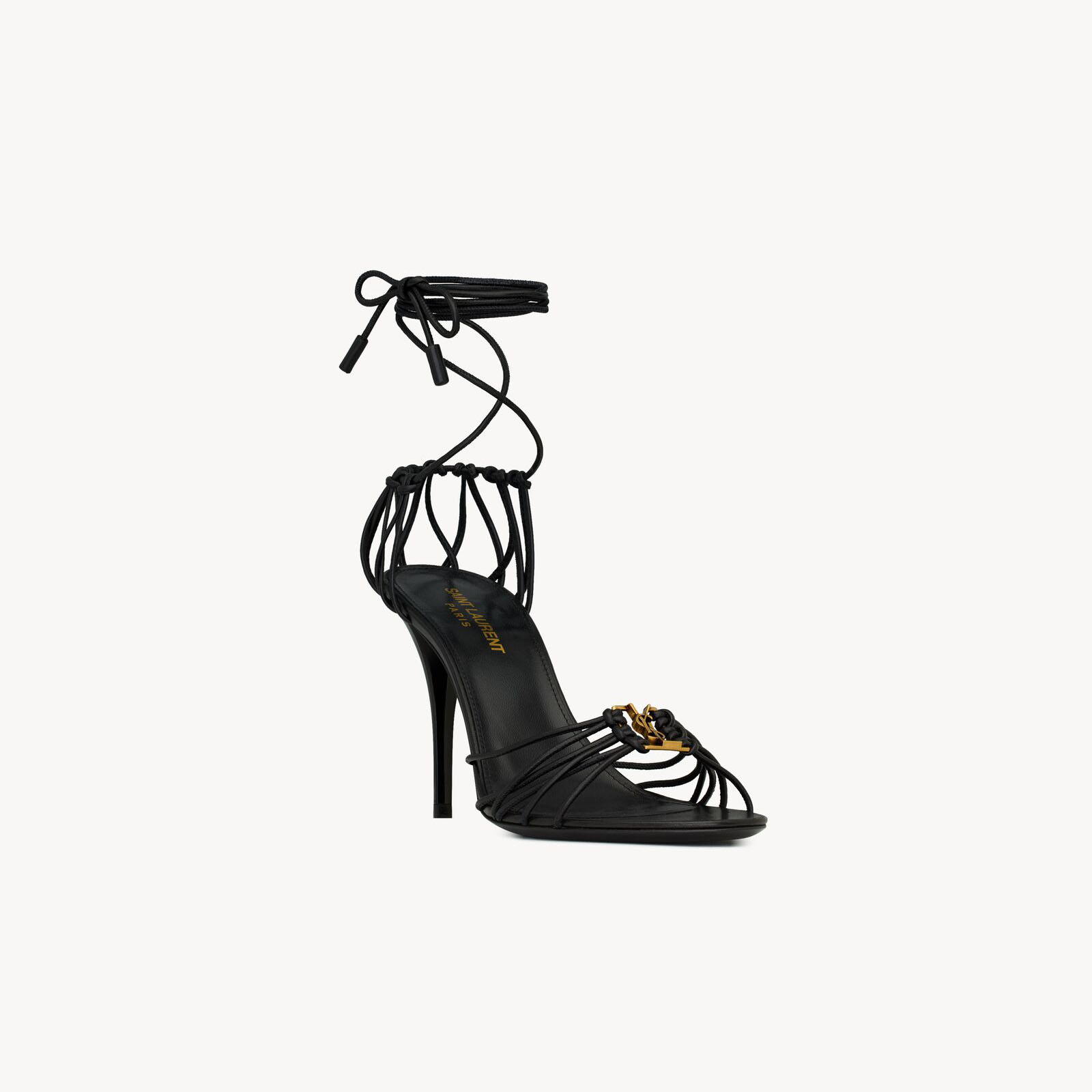 Yves Saint Laurent Black Sleek leather sandals with high heels