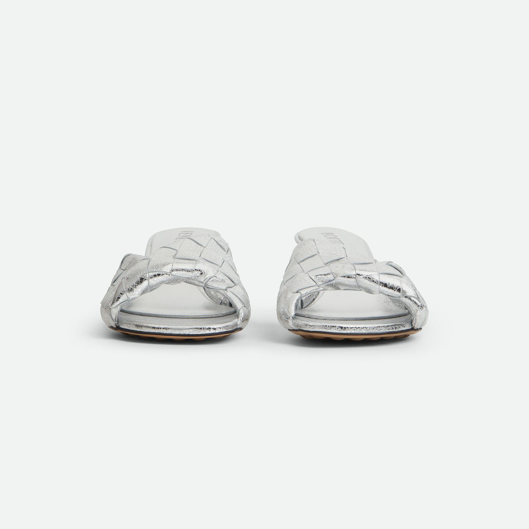 Bottega Veneta Blink Mule In Silver Intrecciato Leather Kitten Heel Mule (Heel Height 4.5cm)