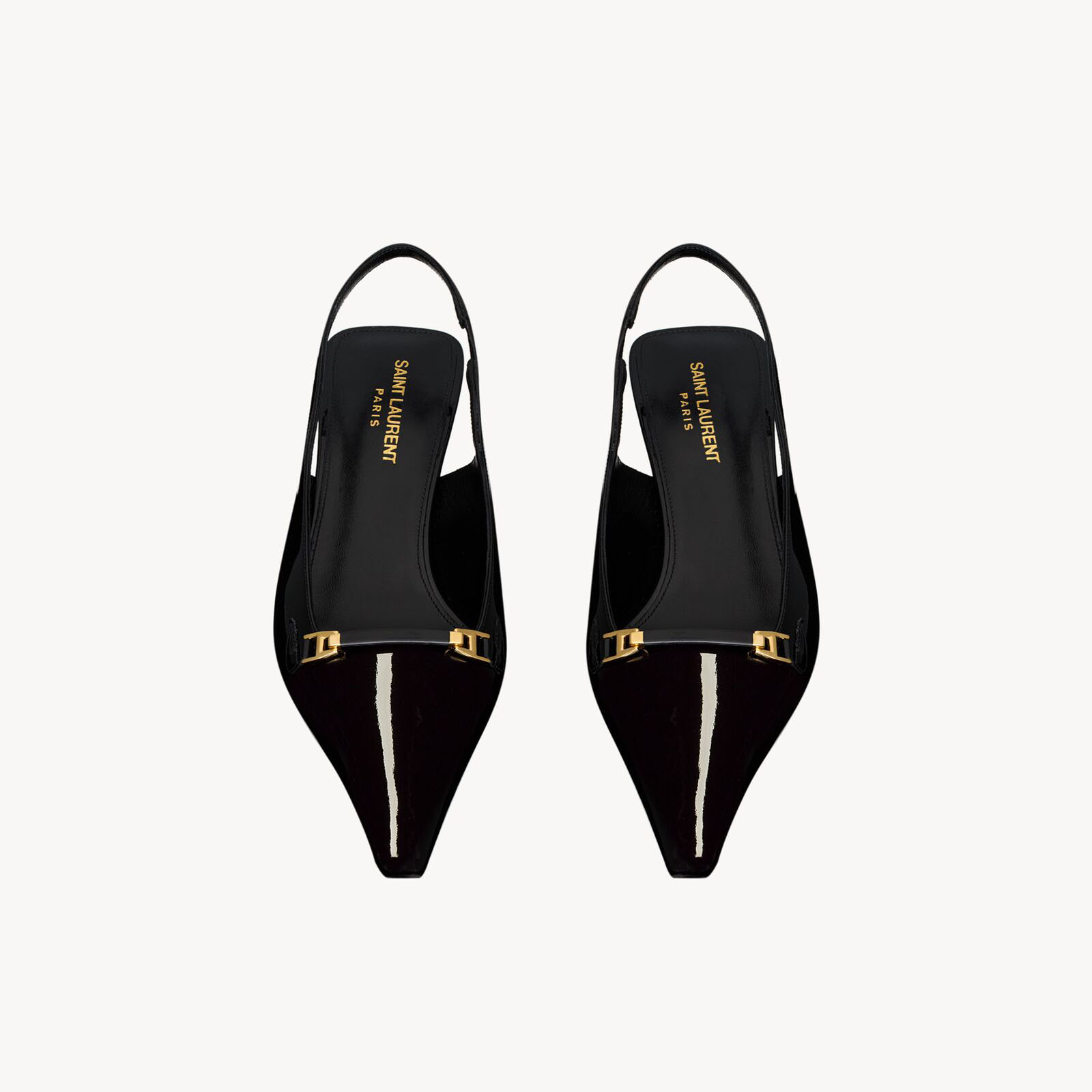 Yves Saint Laurent Mirrored leather crystal sling-off heels