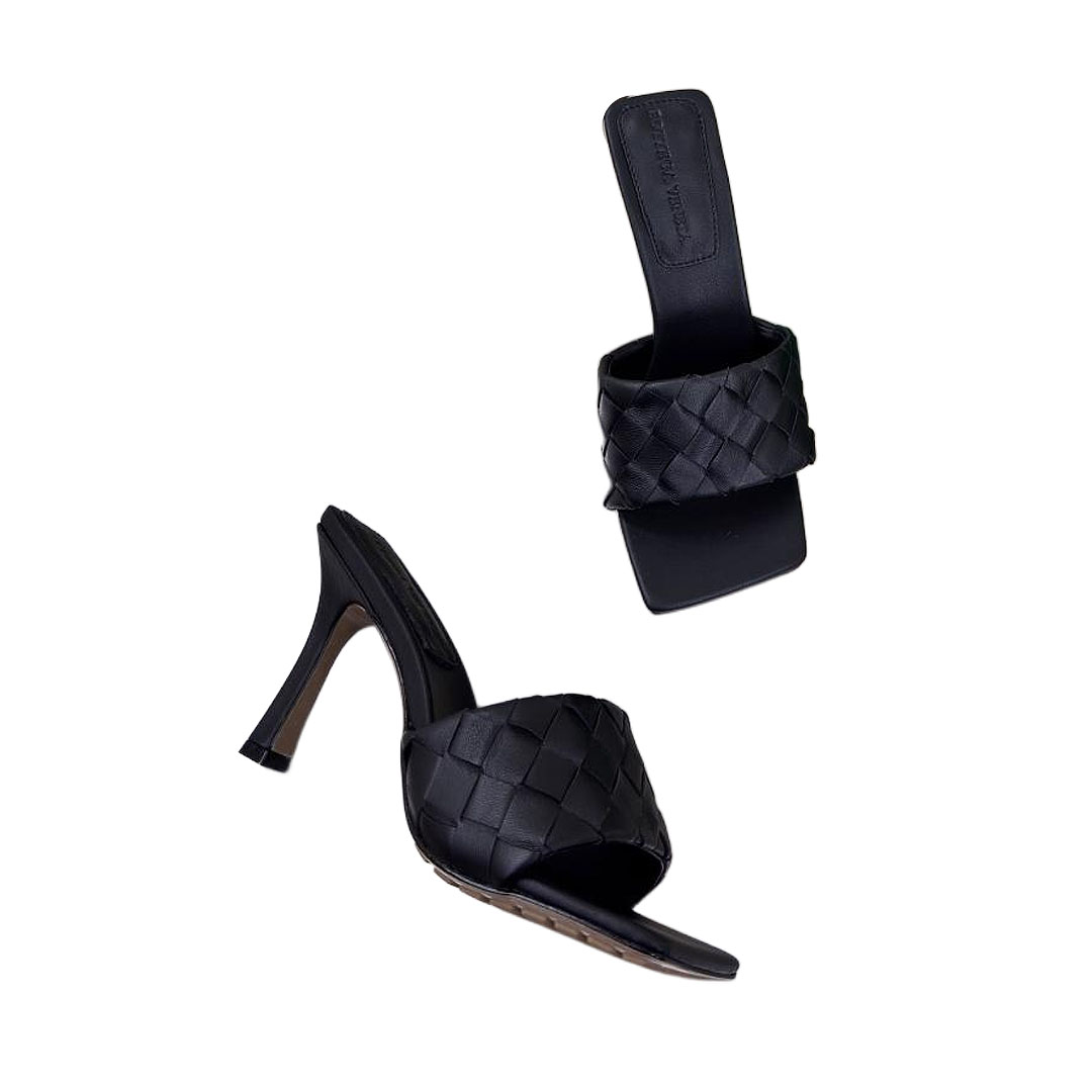 Bottega Veneta Parco Mule In Black Intrecciato Leather Mule (Heel Height 9cm)