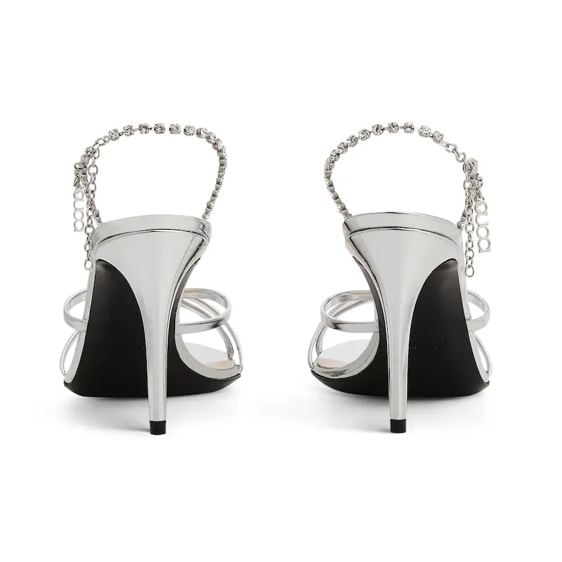 Gucci silvery crystal chain round head high heels sandal