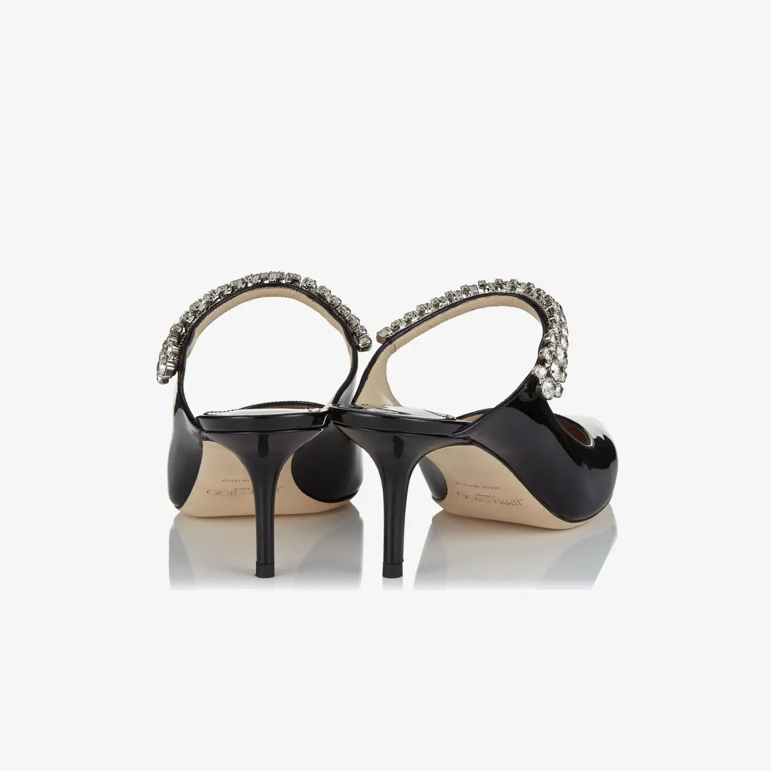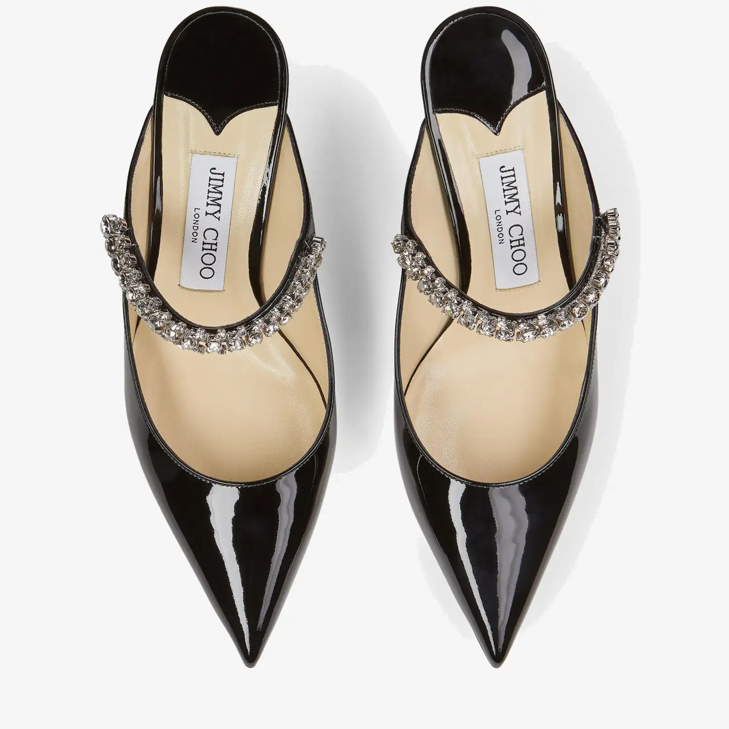 JIMMY CHOO Black patent leather crystal lace Muller shoes slippers