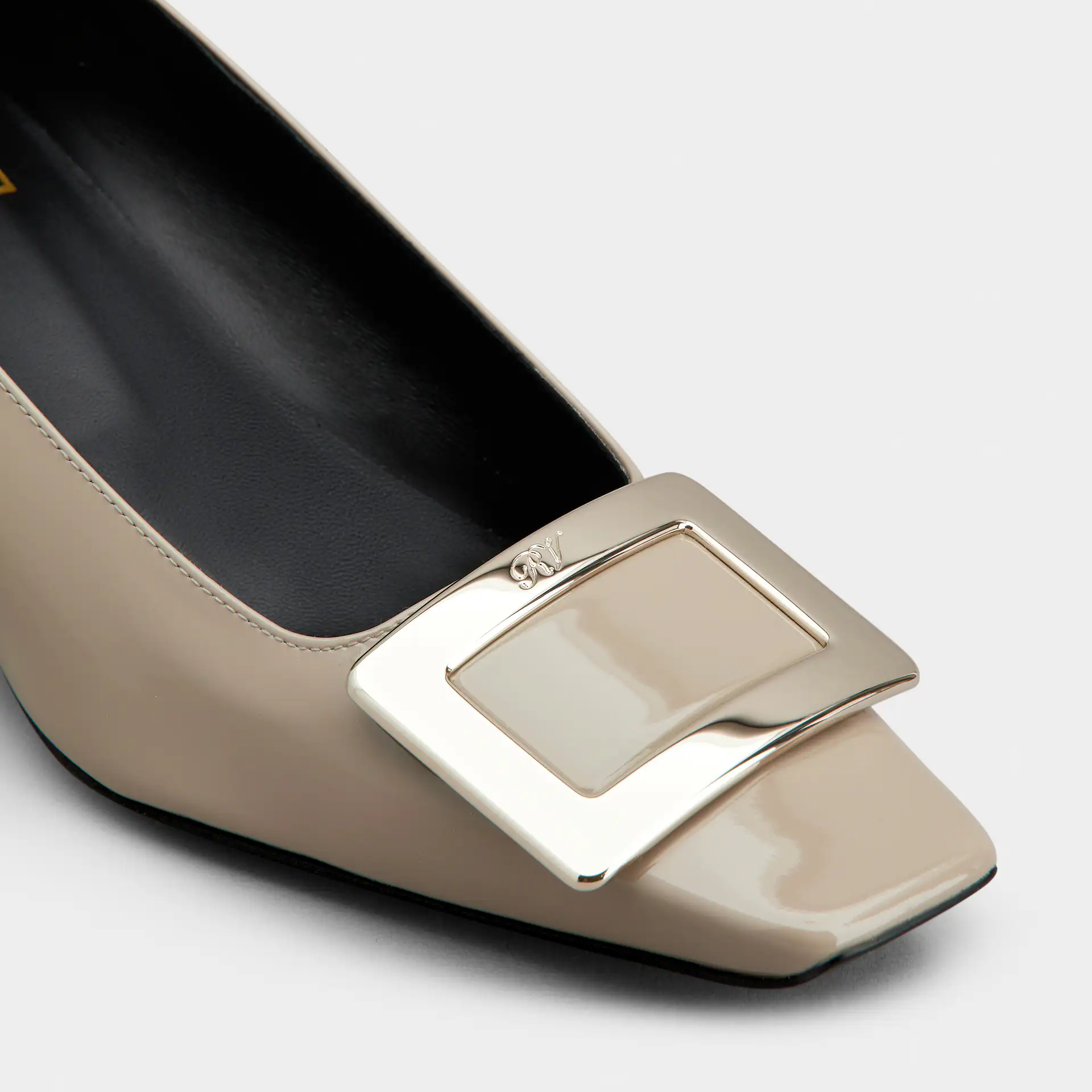 Roger Vivier Belle Vivier Pumps High Heels In Beige Patent Leather With Metal Buckle (Heel Height 4.5cm)