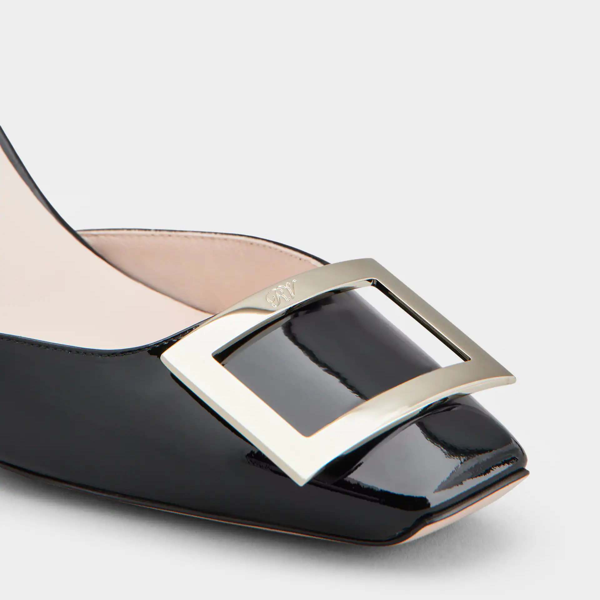 • Roger Vivier Trompette Slingback Pumps High Heels In Black Patent Leather With Metal Buckle (Heel Height 7cm)