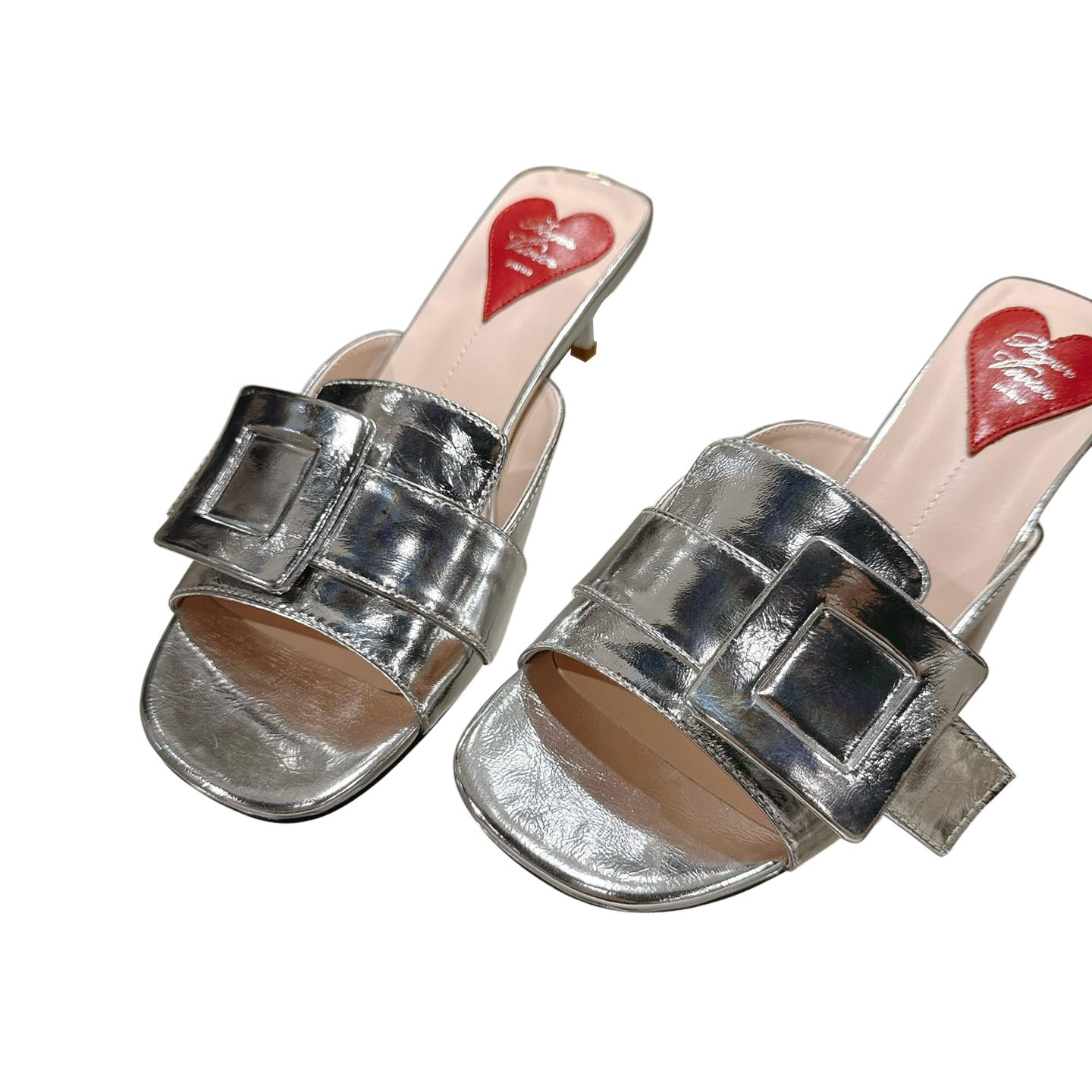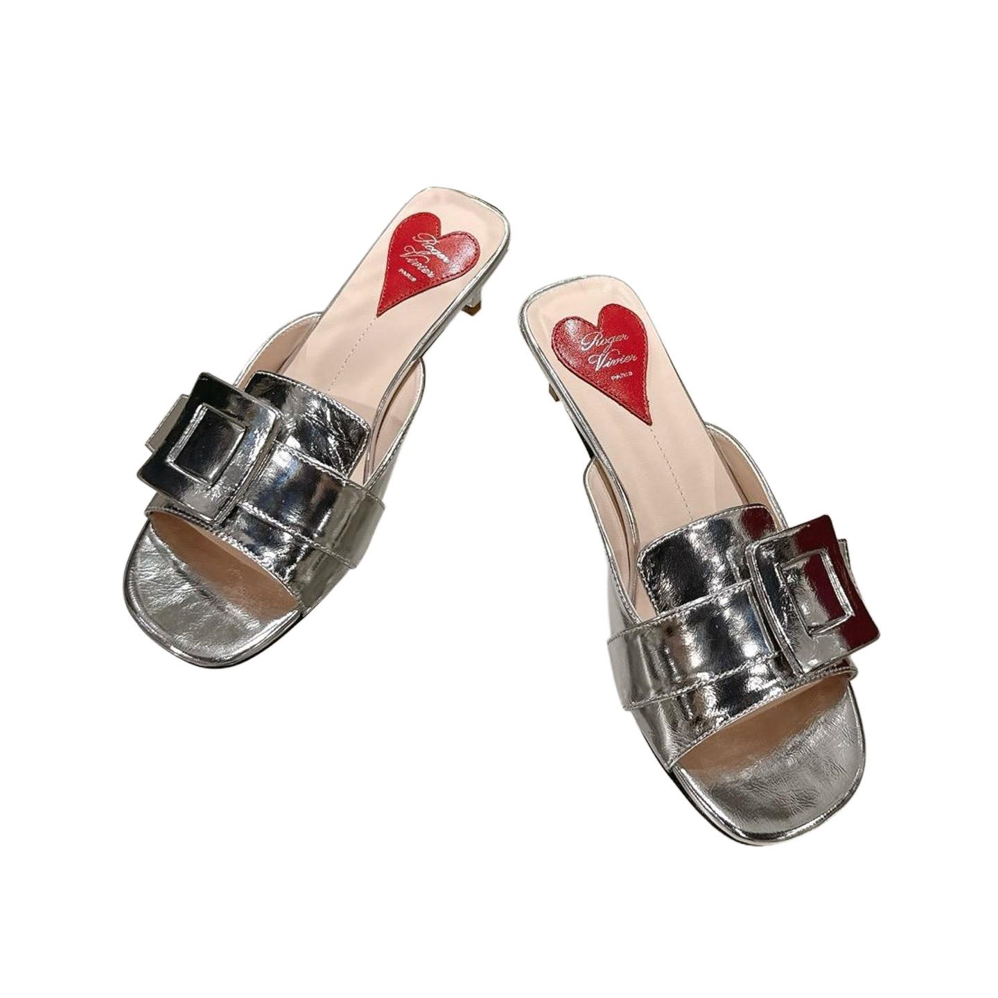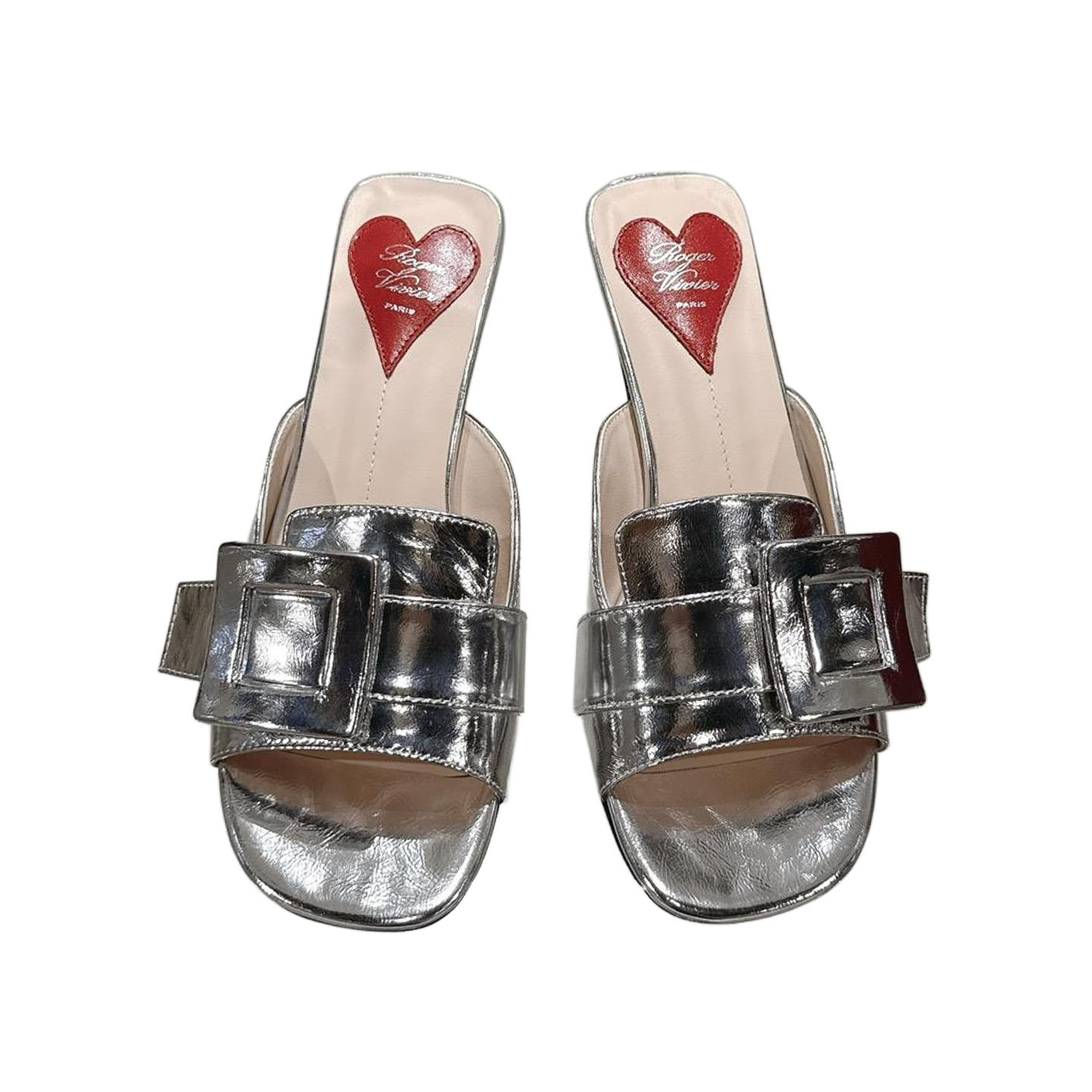 Roger Vivier Viv�� Canard Mules Sandals In Gold/Silver Leather With Lacquered Metal Buckle (Heel Height 5.5cm)