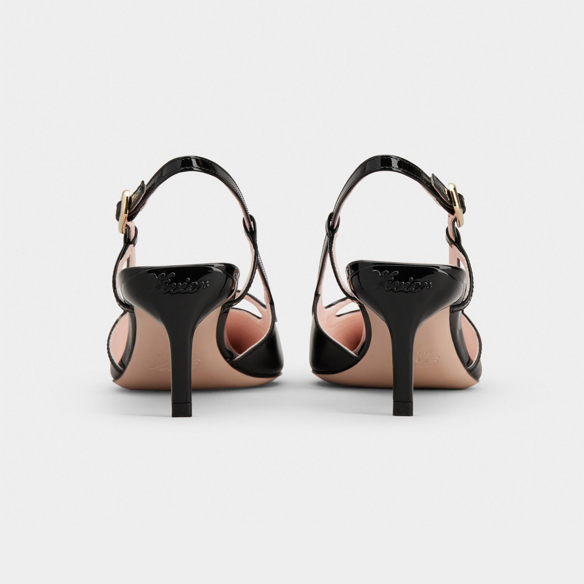• Roger Vivier Viv�� Canard Slingback Pumps High Heels In Black Leather With Metal Buckle (Heel Height 5.5cm)