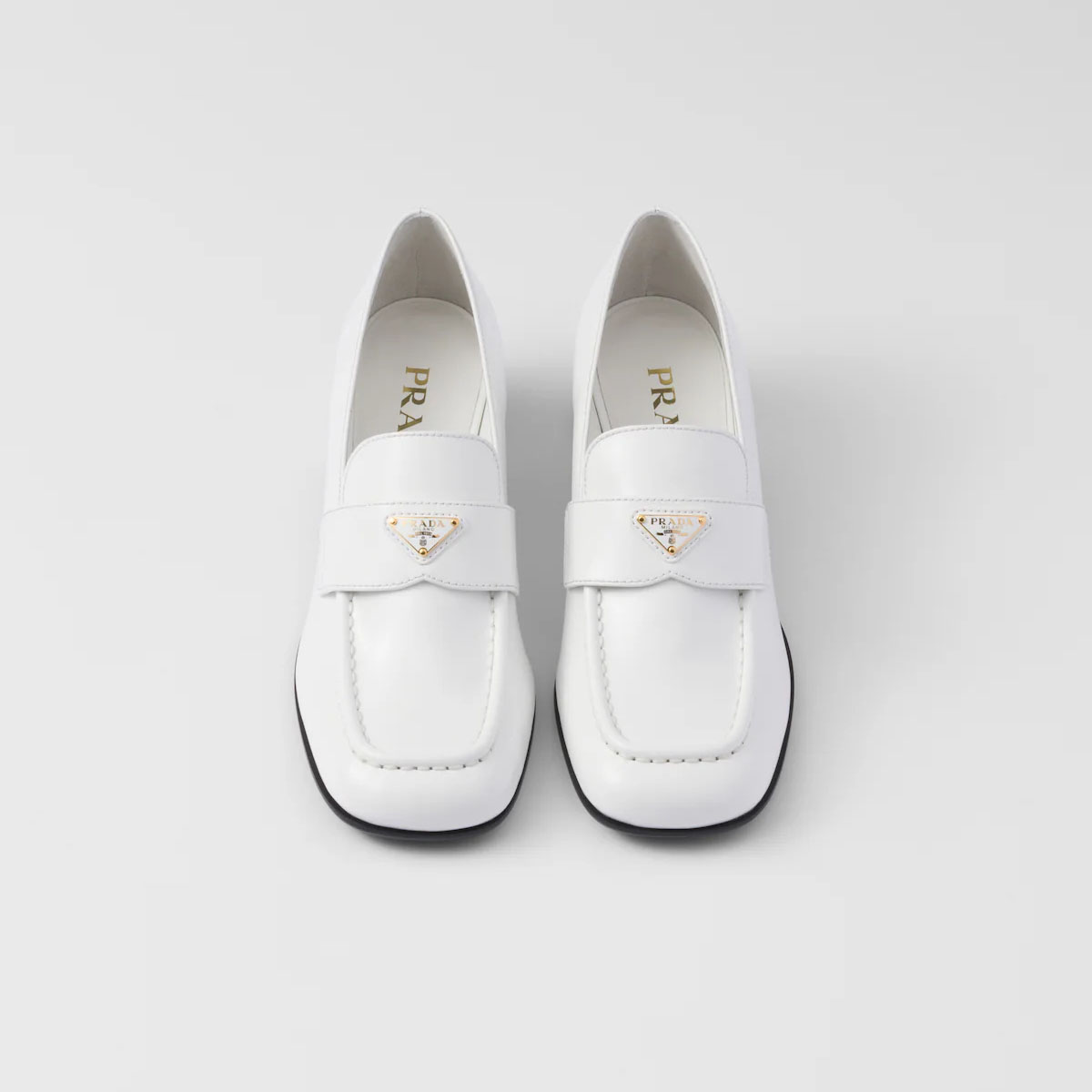 PRADA White shiny leather loafers