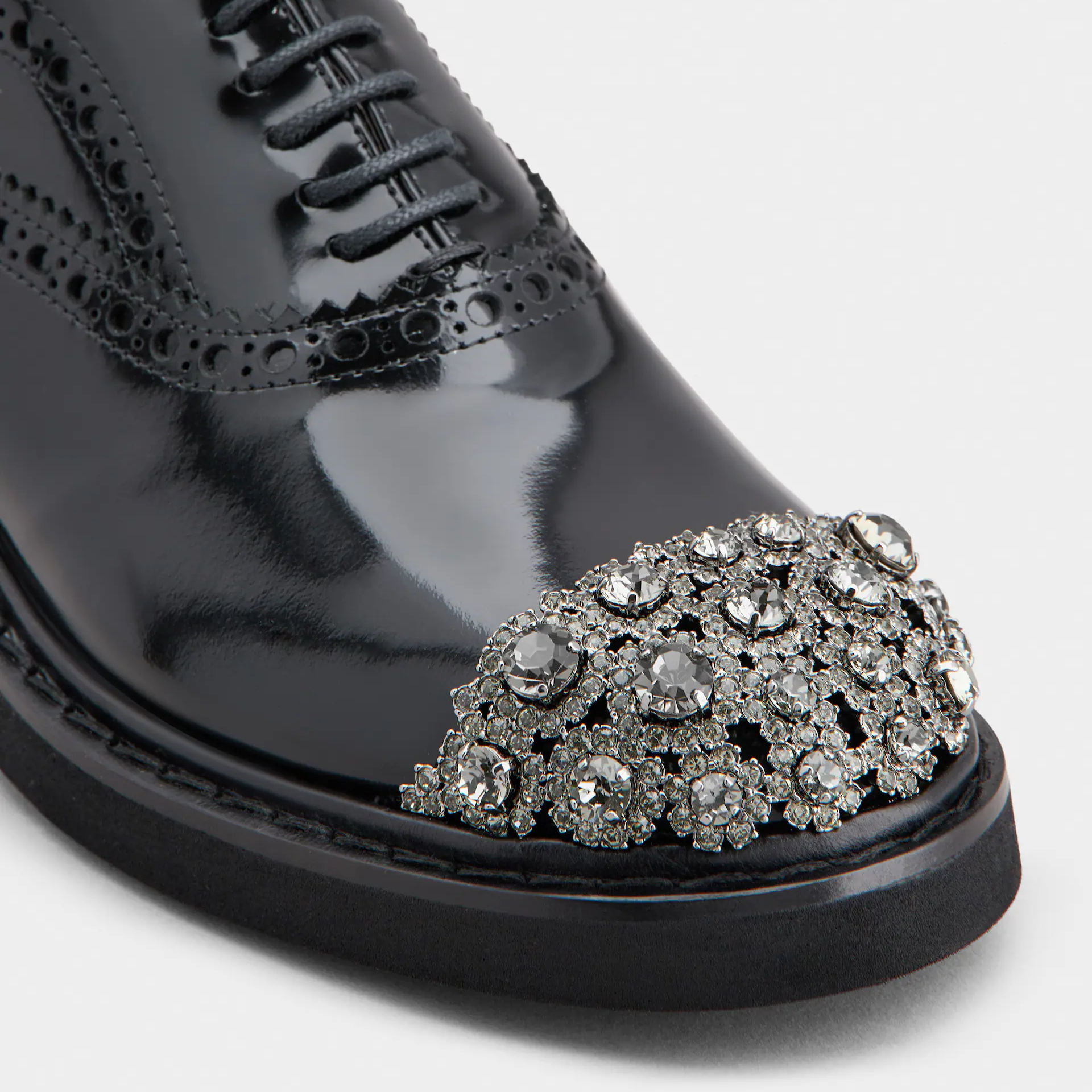 Roger Vivier Viv’ Rangers Lace-Ups Loafers In Black Leather With Crystal Flowers