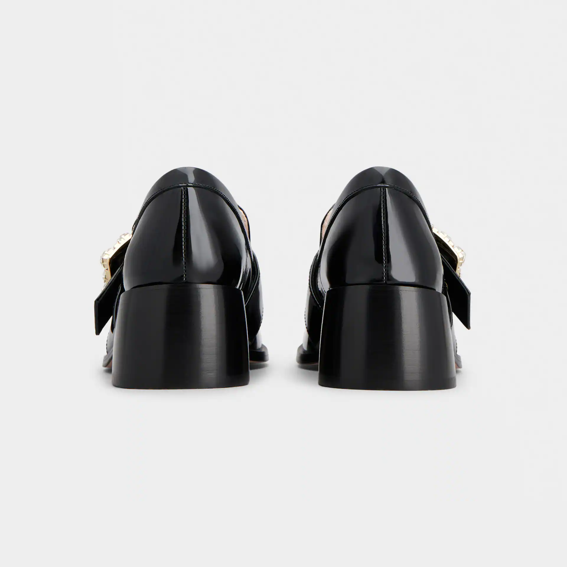 • Roger Vivier Viv’ Rangers Loafers In Black Patent Leather With Crystal Buckle (Heel Height 5.5cm)