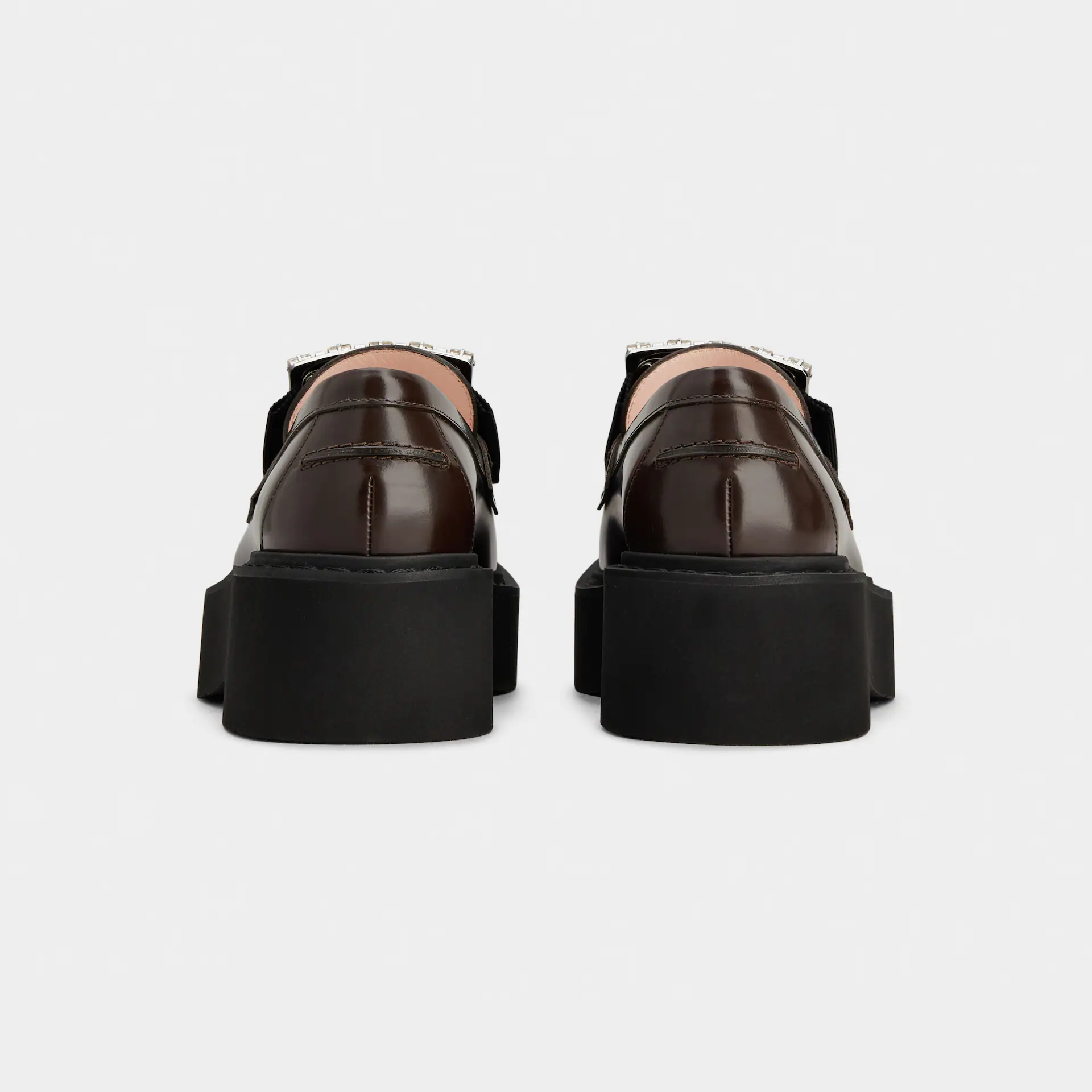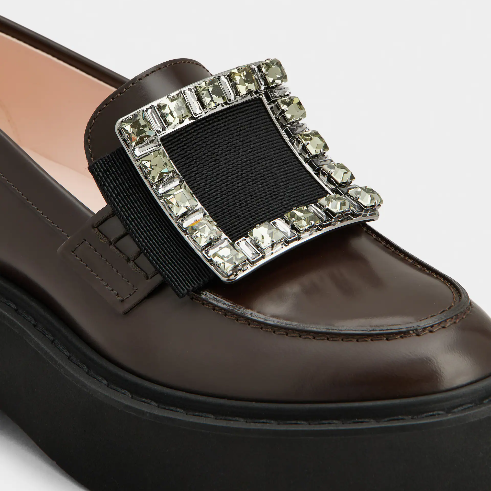• Roger Vivier Viv’ Rangers Loafers In Brown Leather With Crystal Buckle (Heel Height 5.5cm)