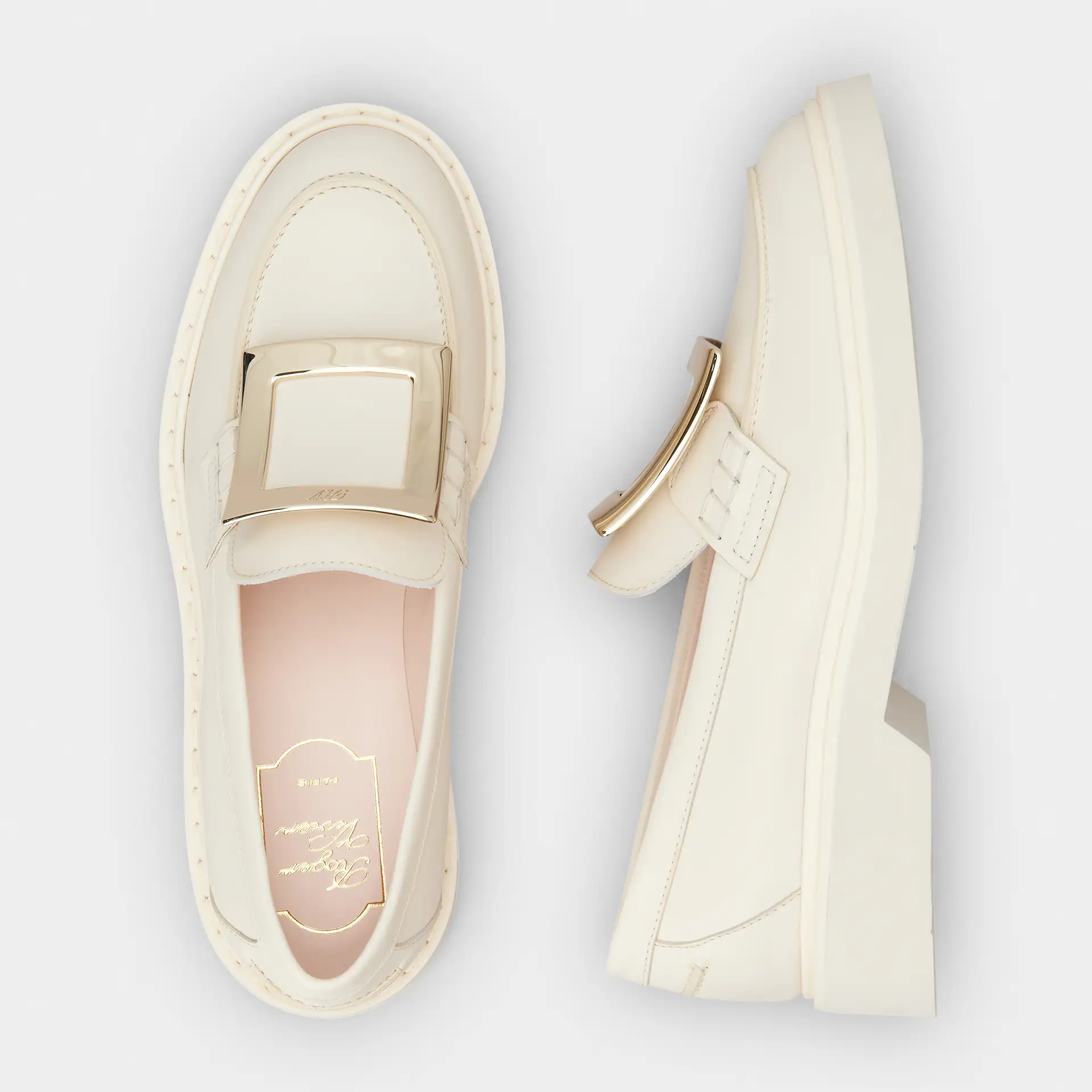 Roger Vivier Viv’ Rangers Loafers In White Leather With Metal Buckle (Heel Height 2.5cm)
