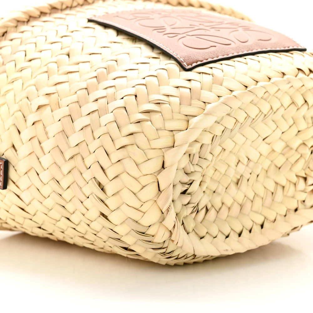 This Loewe Leaf Palm Drawstring Bucket Bag Mini in Naturale/Tan features calfskin leather in a naturalistic design. Compact and lightweight, it’s perfect for essentials. The natural and tan tones add earthy charm. Drawstring closure ensures secure storage. A unique and stylish accessory. Perfect for casual outings.