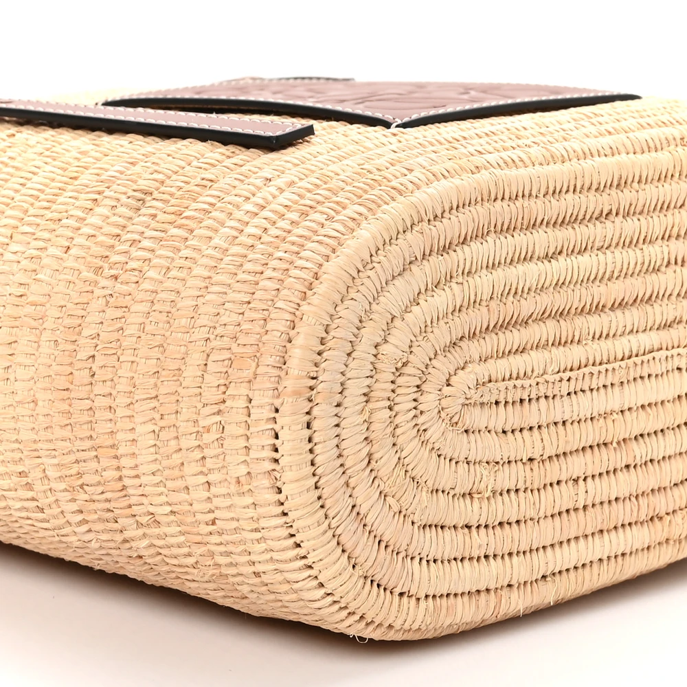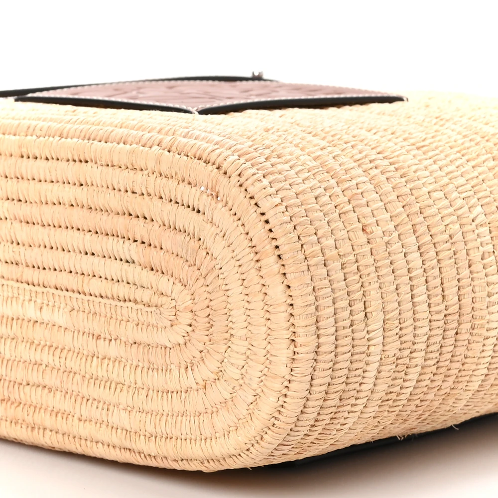 • Loewe Square Basket Tote Bag Small Natural/Pecan Raffia & Calfskin Leather