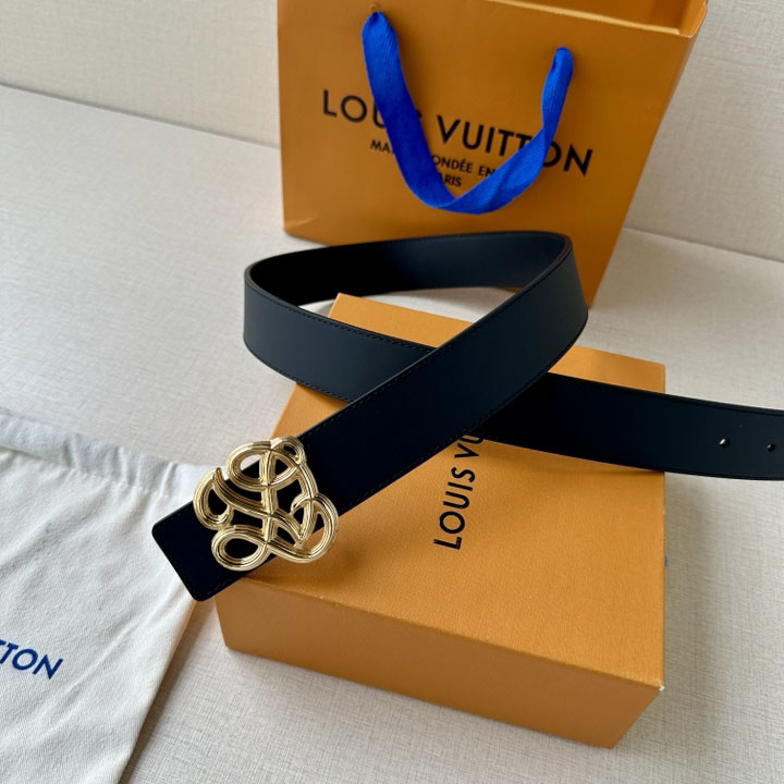 Louis Vuitton Men’s Dynasty Belt In Black/Brown/Coffee Calfskin With Gold/Silver Hardware 34mm