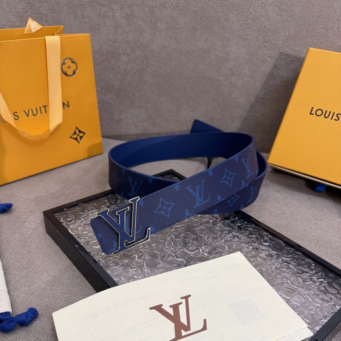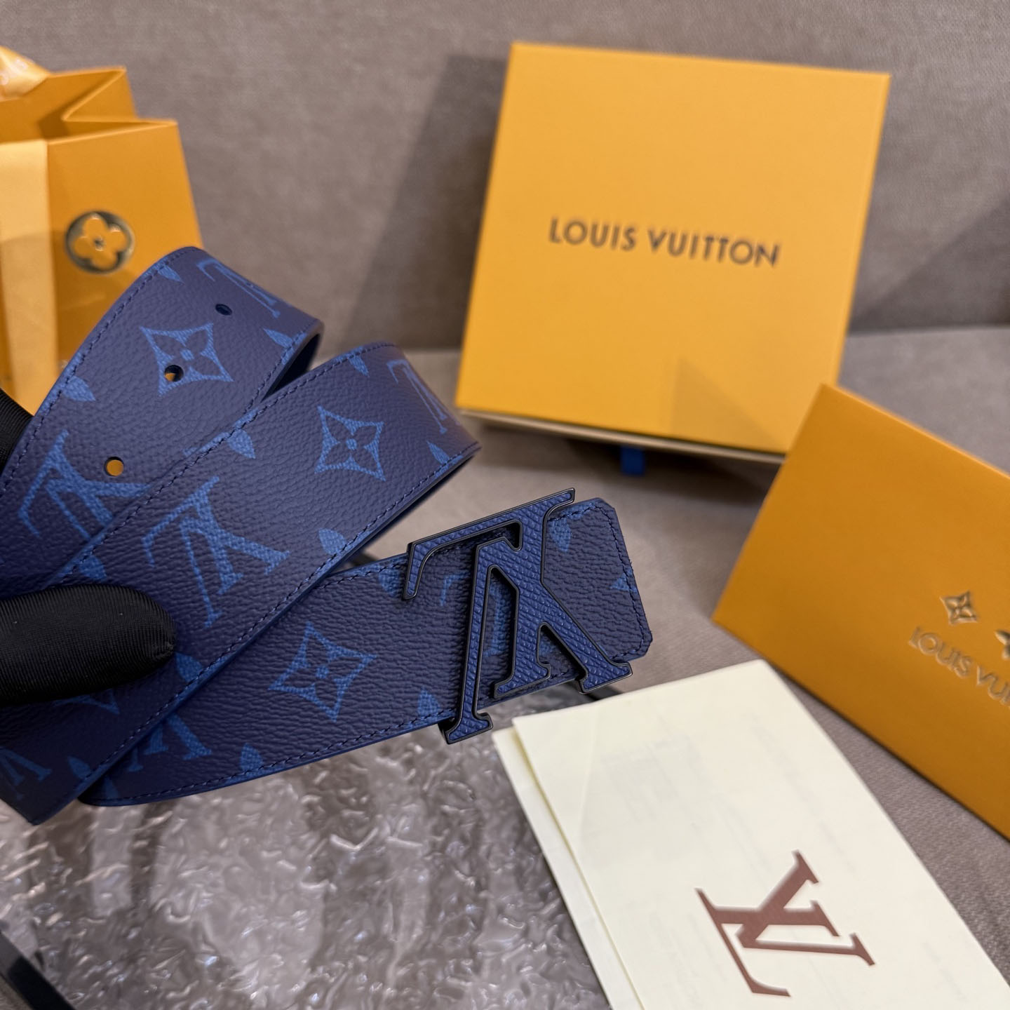 Louis Vuitton Men’s LV Buckle Belt In Blue Monogram Canvas With Black/Gold/Silver Hardware 40mm