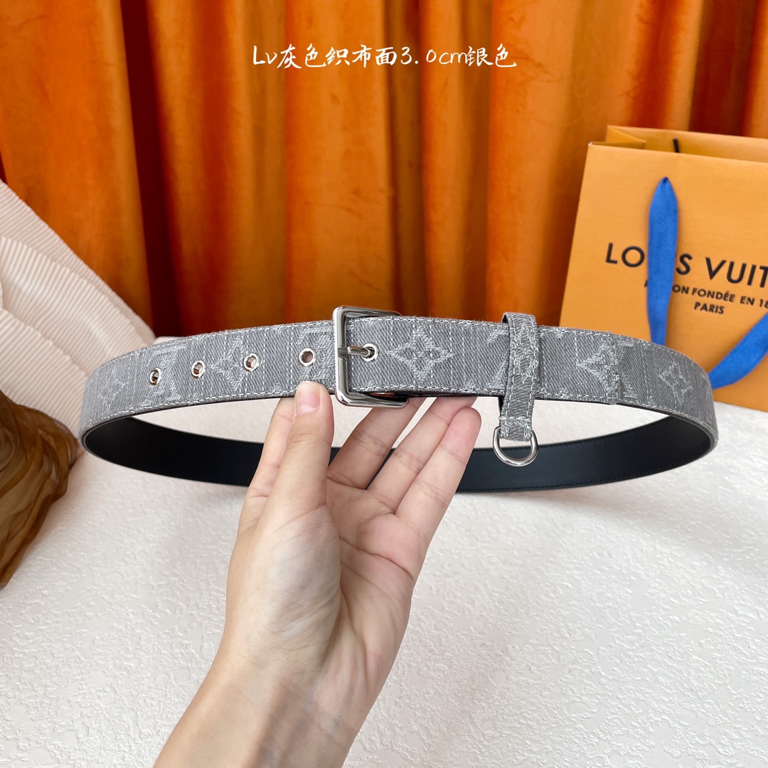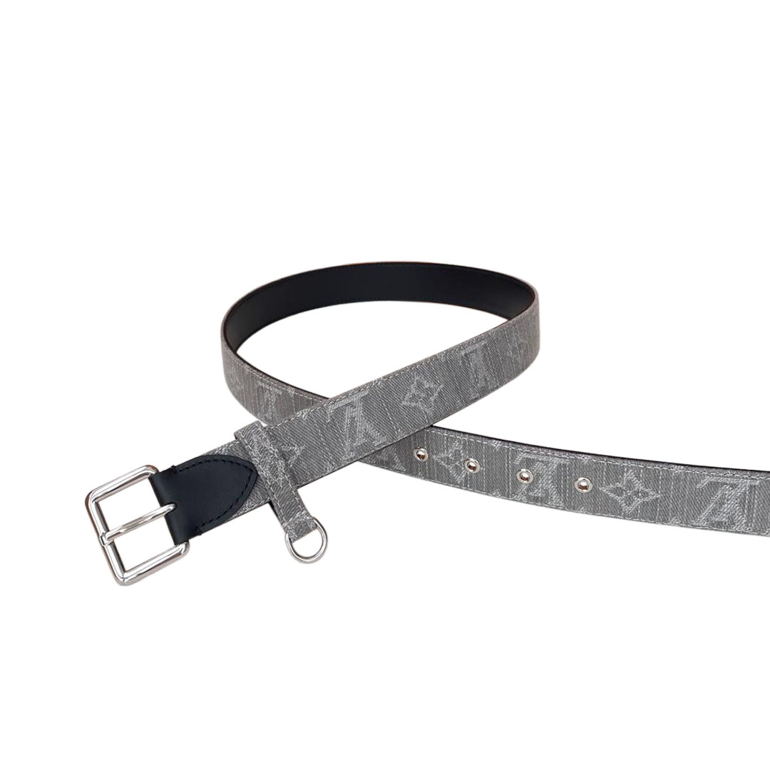 Louis Vuitton Women’s D-Ring Raffia Belt In Grey Monogram Canvas With Silver Hardware 30mm