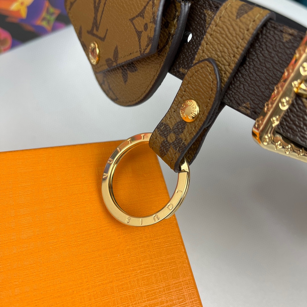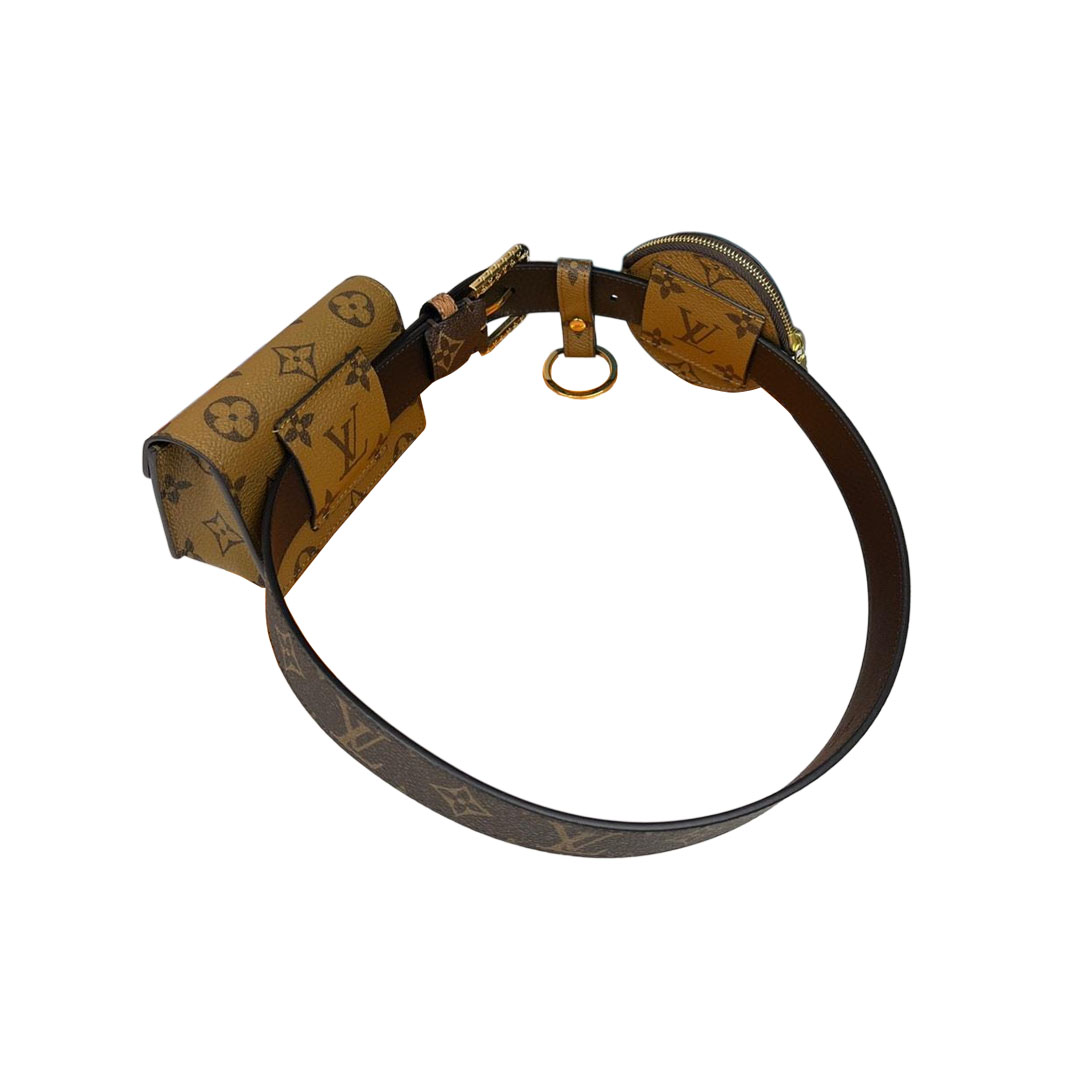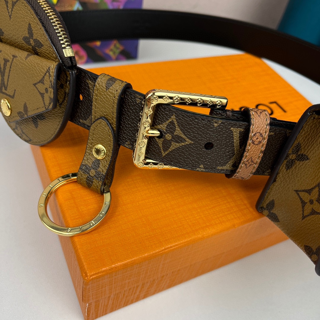 Louis Vuitton Women’s Daily Mult Pocket Belt In Black Calfskin And Monogram Canvas With Gold Hardware 30mm