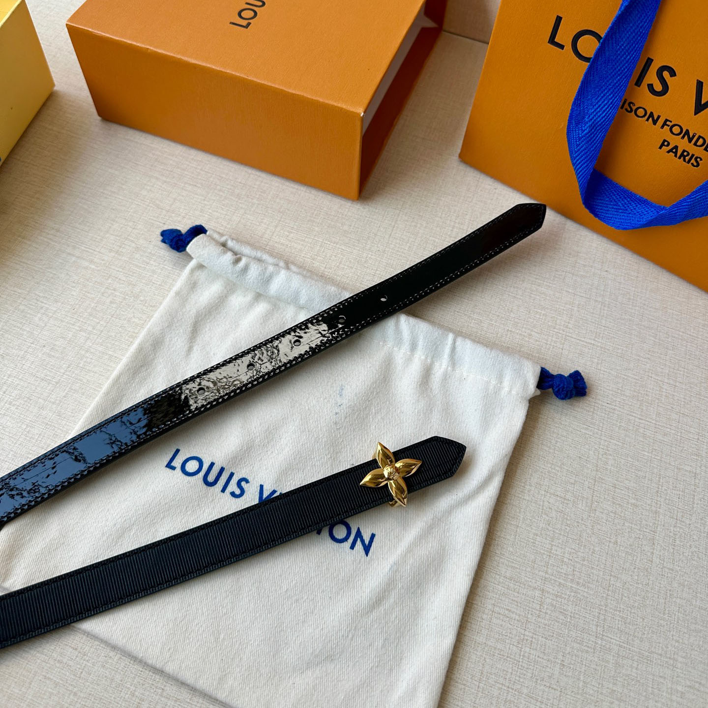 Louis Vuitton Women’s Flowergram Reversible Belt In Black/White/Blue Monogram Reverse Canvas With Gold/Silver Hardware 20mm