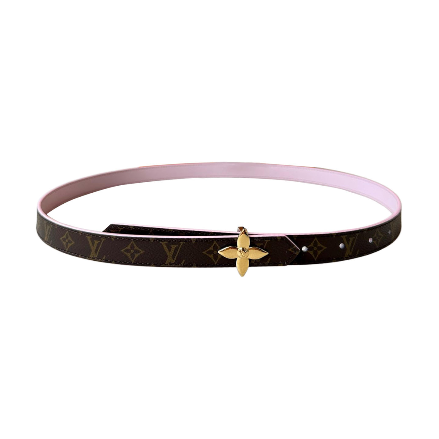 • Louis Vuitton Women’s Mini Flowergram Reversible Belt In Brown/Black/Pink/White Calfskin And Monogram Canvas With Gold/Silver Hardware 20mm