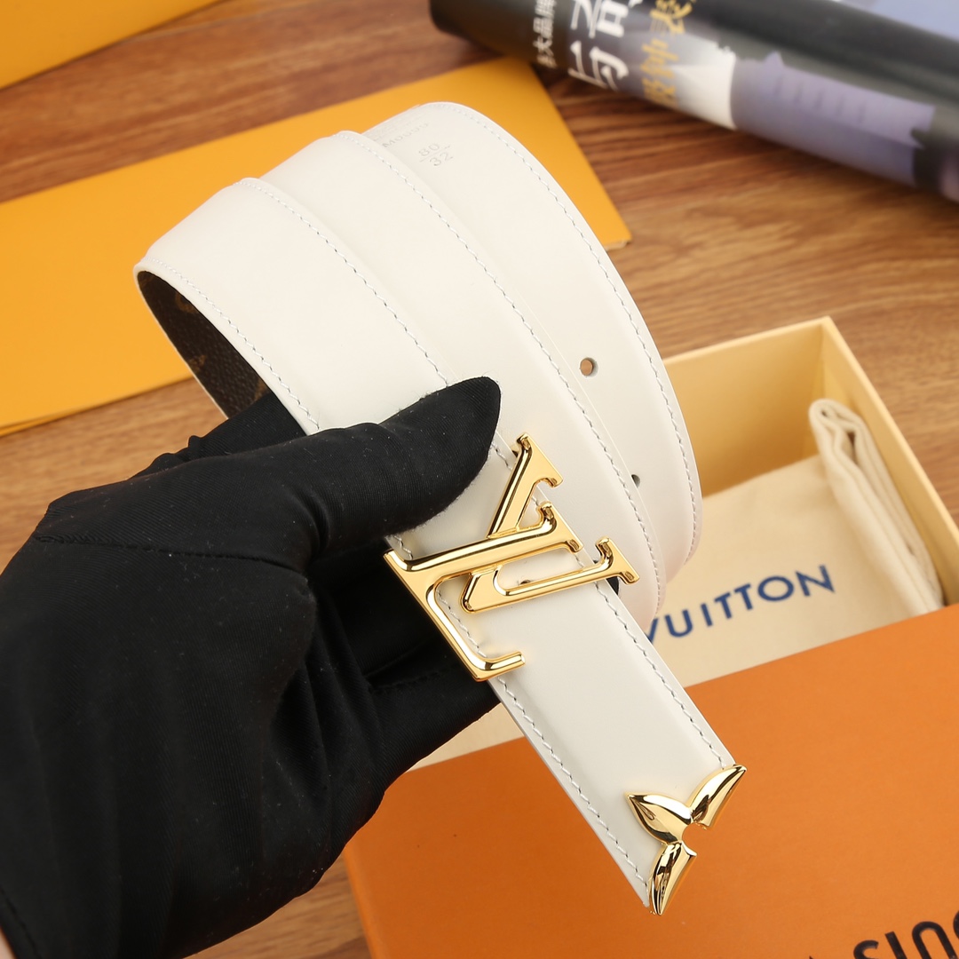 Louis Vuitton Women’s Pretty LV Reversible Belt In White/Black Calfskin And Monogram Canvas With Gold/Silver/Black Hardware 30mm