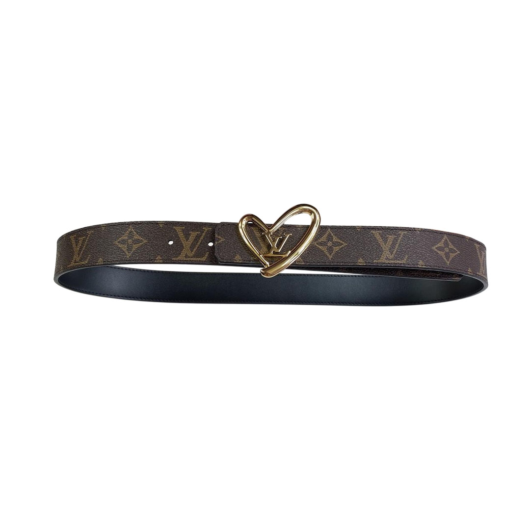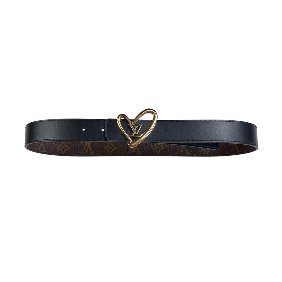 Louis Vuitton Women’s The Knot Reversible Belt In Black Calfskin And Monogram Canvas With Gold Hardware 20mm