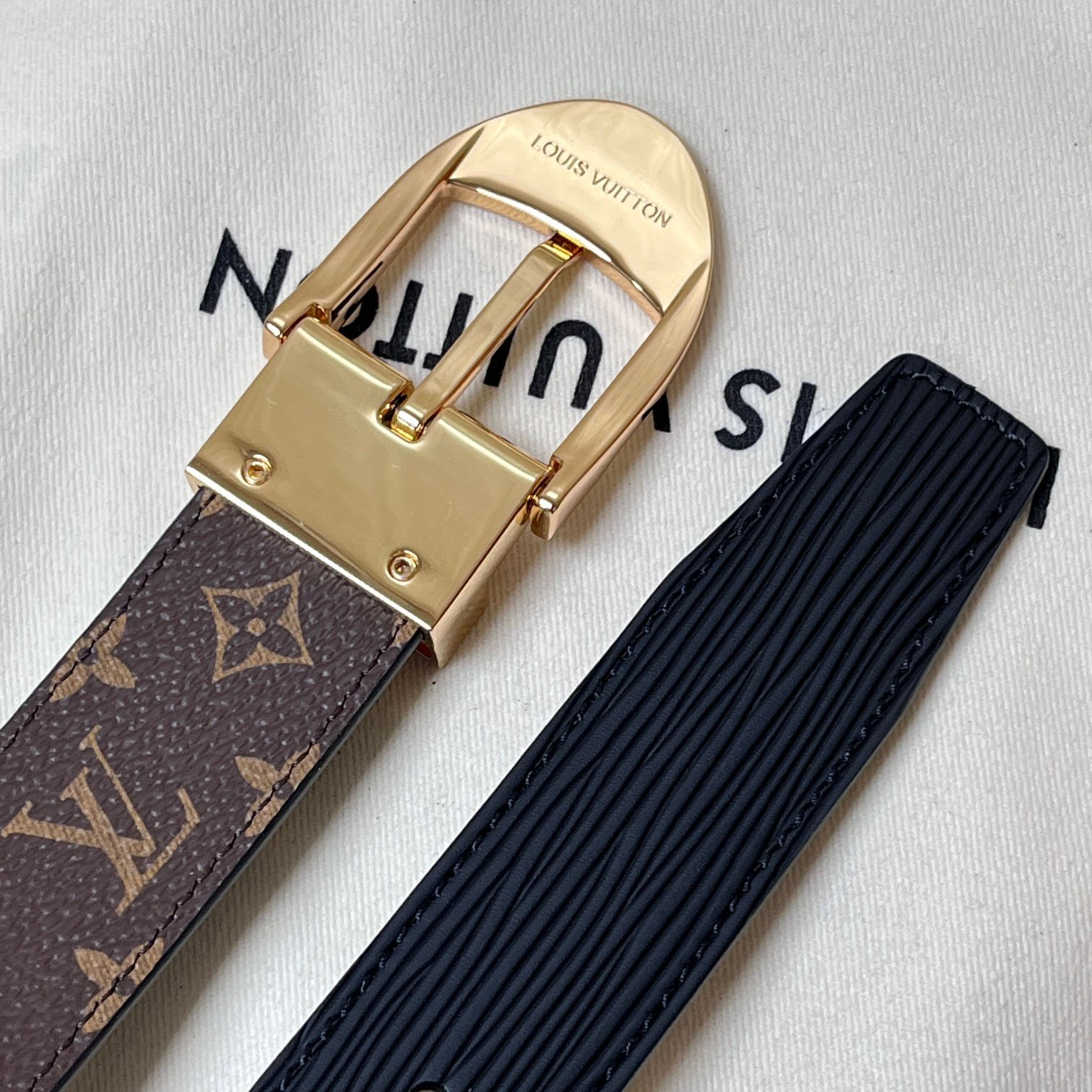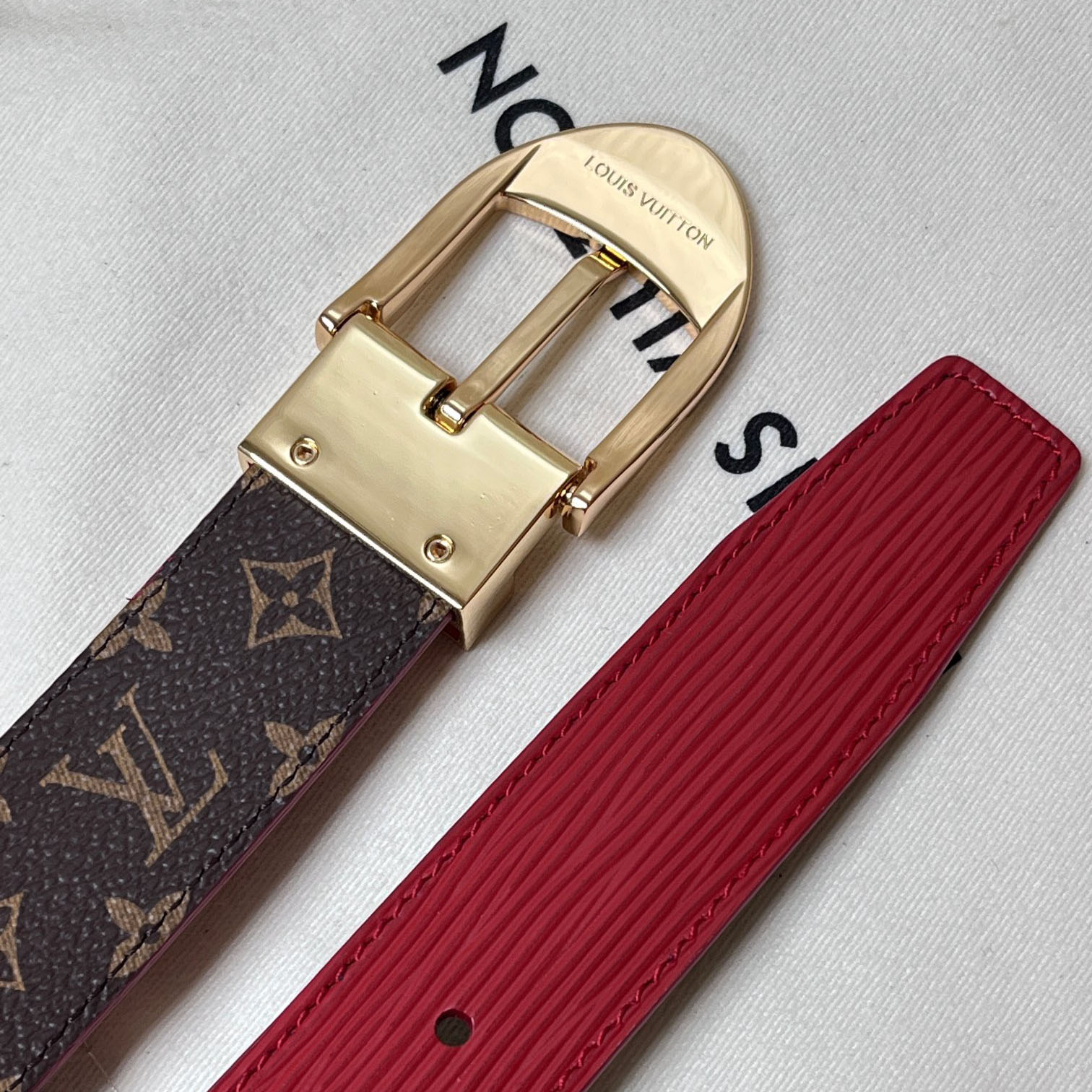 Louis Vuitton Women’s Timeless Epi Belt In Black/Red/Pink Calfskin And Monogram Canvas With Gold/Silver Hardware 30mm