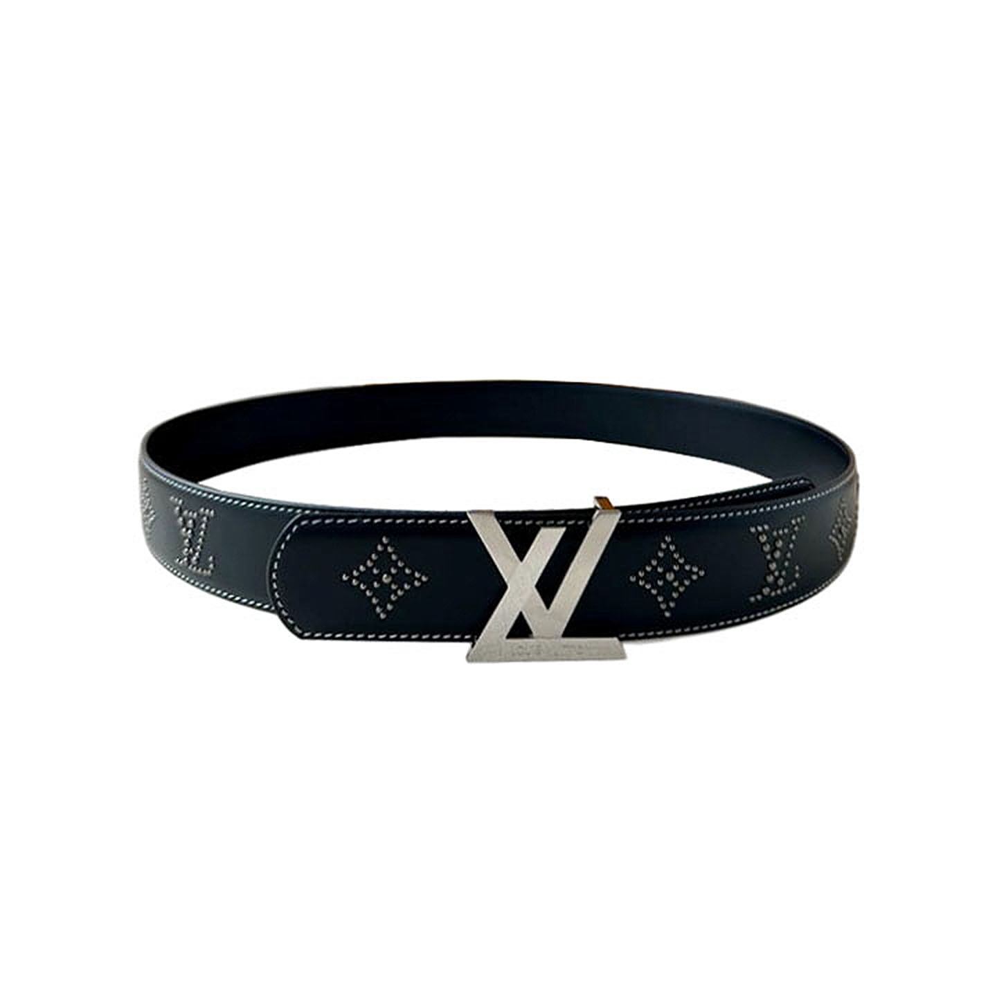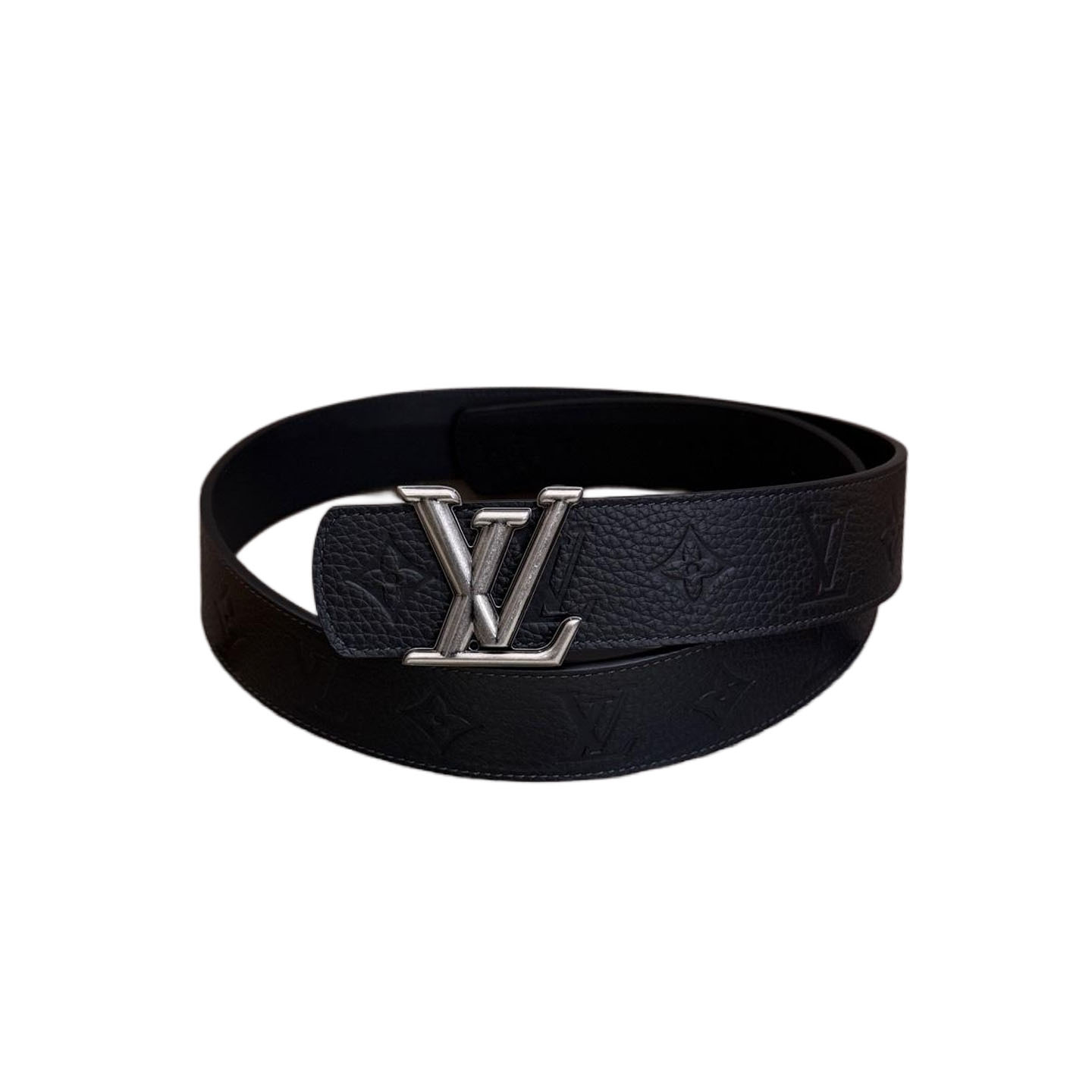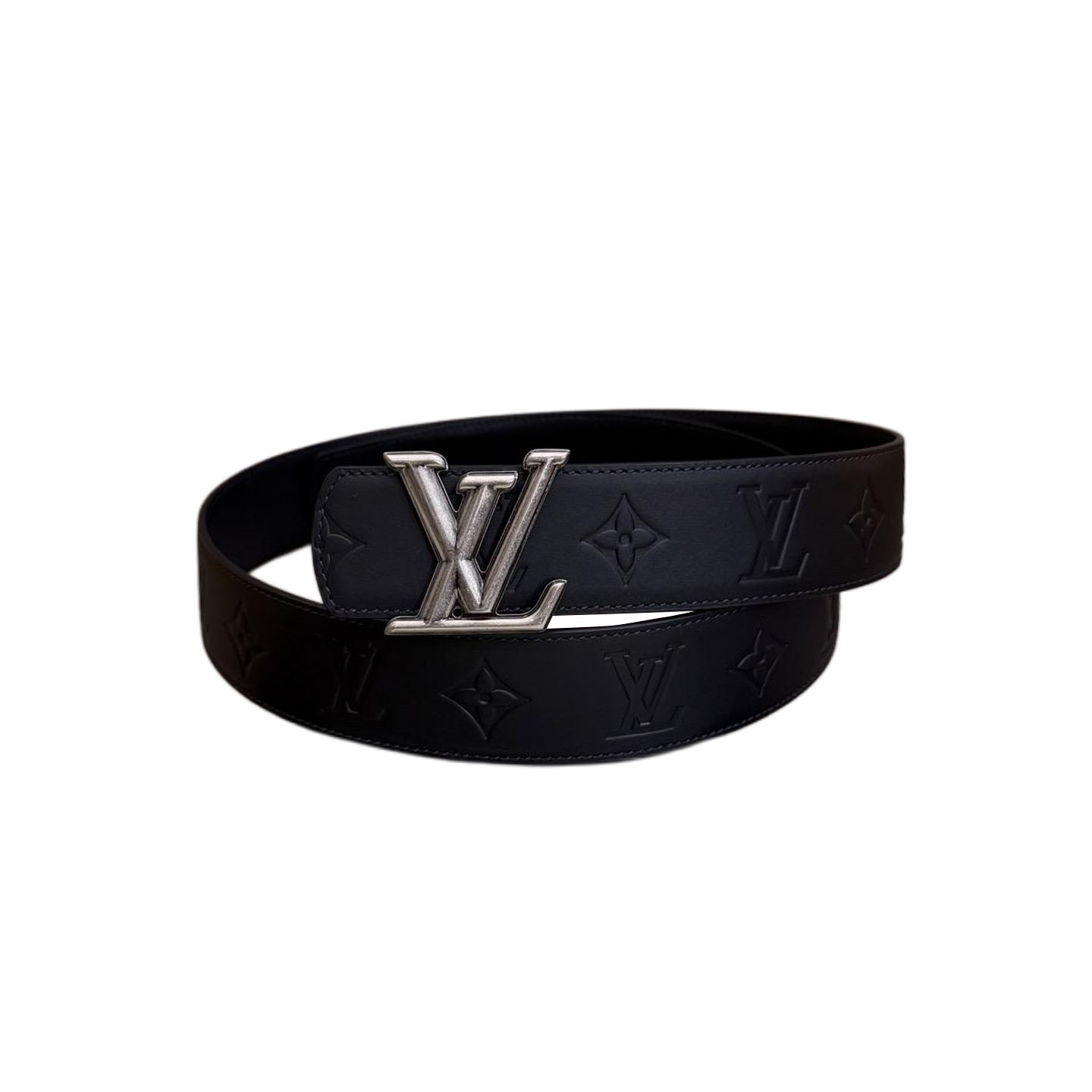 Louis Vuitton Men’s Pont Neuf Belt In Blue/Black Logo-Embossed Calfskin With Silver Hardware 35mm