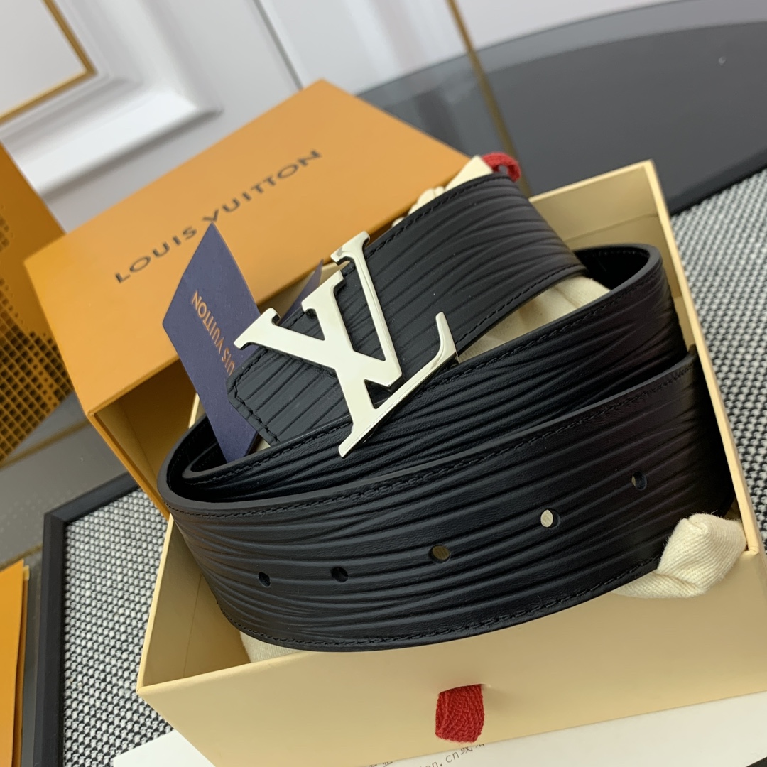 Louis Vuitton Men’s Initiales Belt In Black Calfskin With Gold/Silver Hardware 40mm