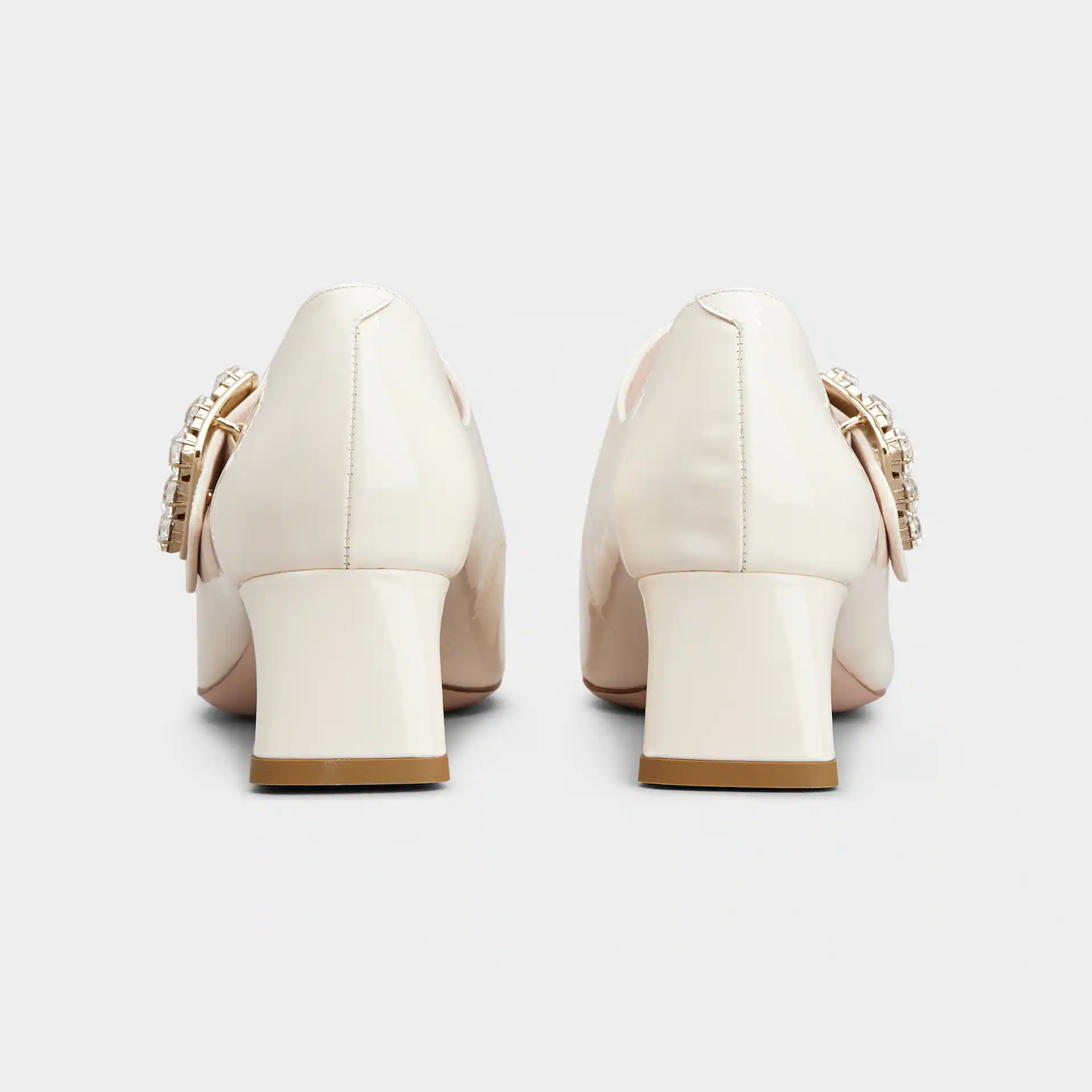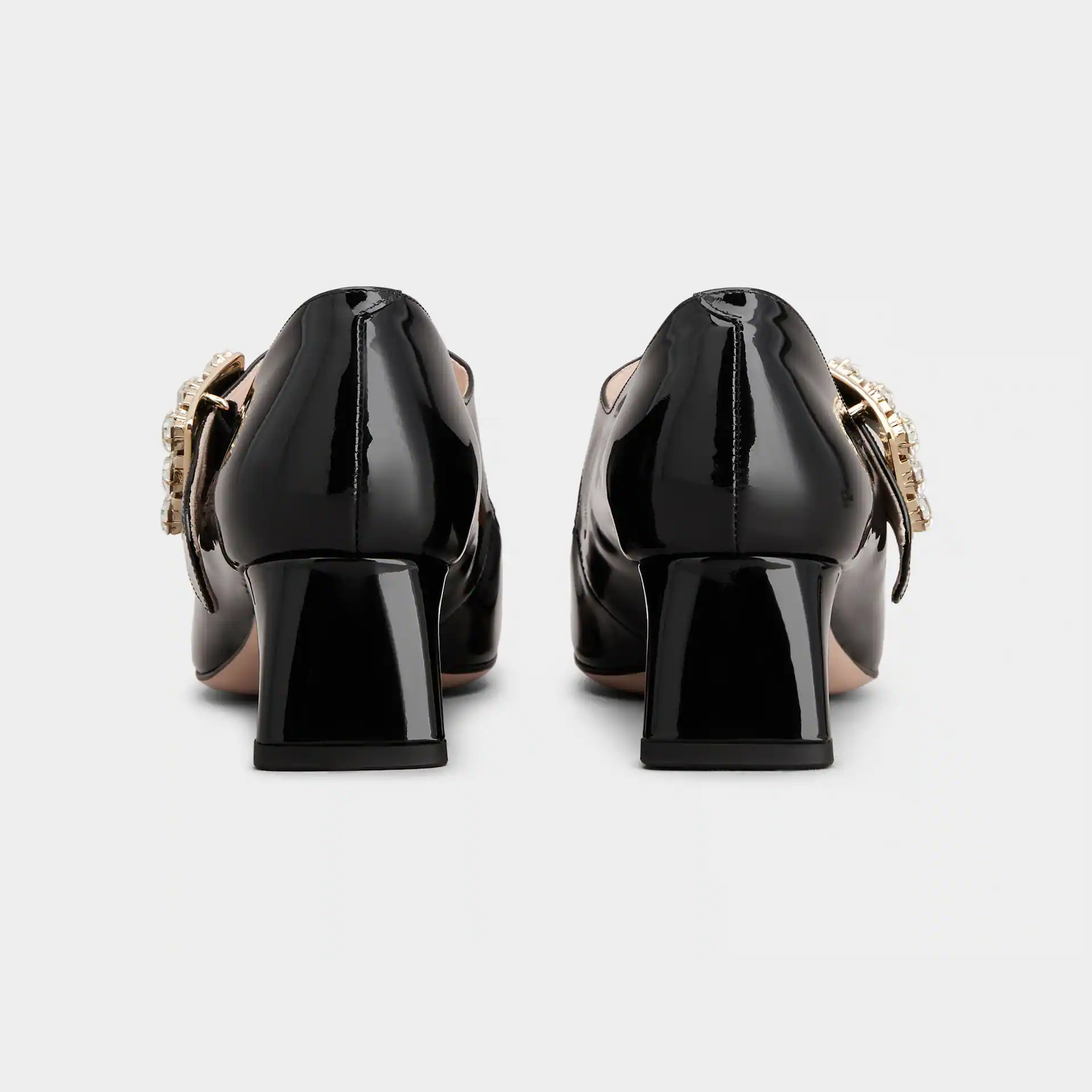 • Roger Vivier Tr猫s Vivier Dasiy Mary Janes In Black/White Patent Leather With Crystal Buckle (Heel Height 4.5cm)