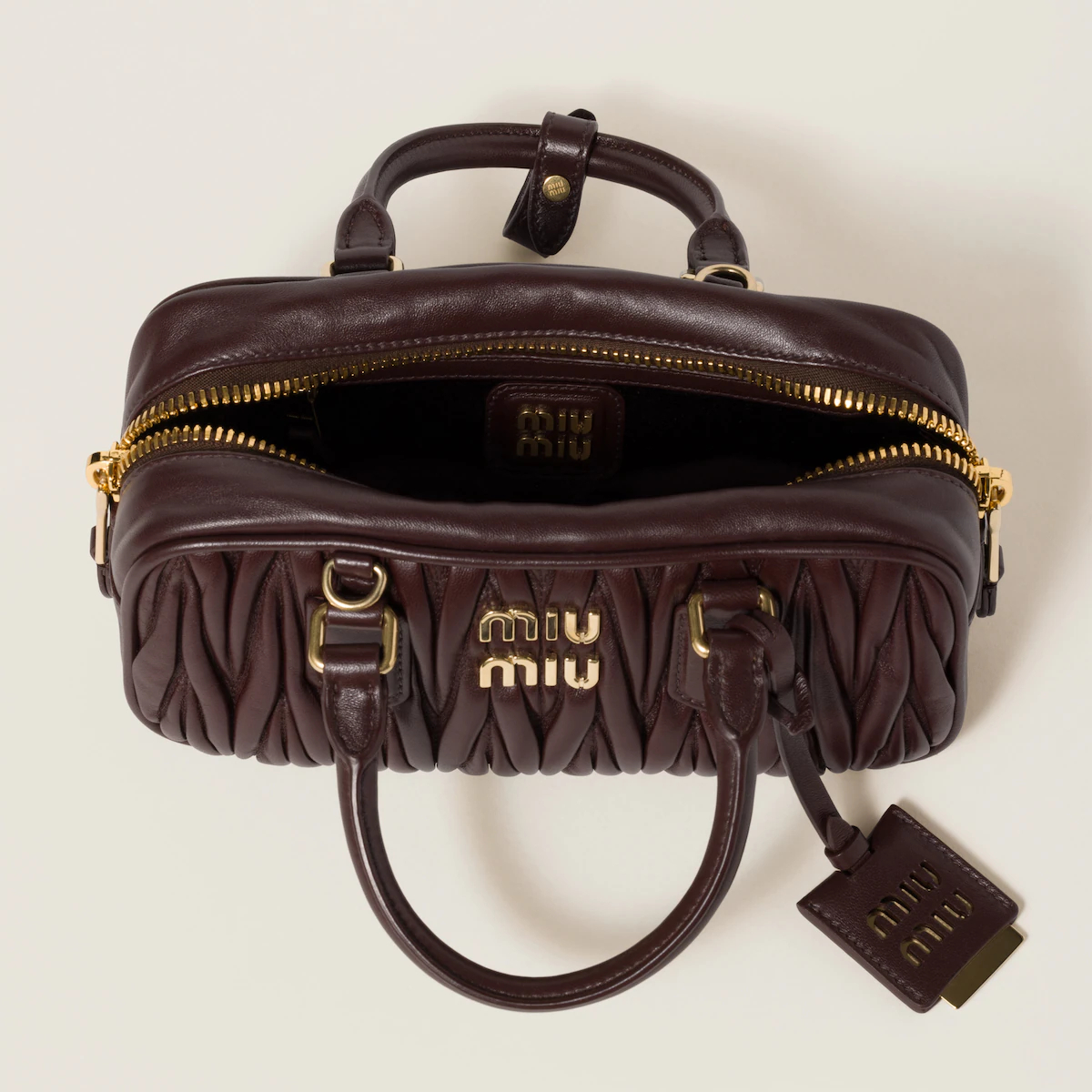 - Miu Miu Arcadie matelassé Quilted Lambskin Leather Deep Brown Top-Handle Bags