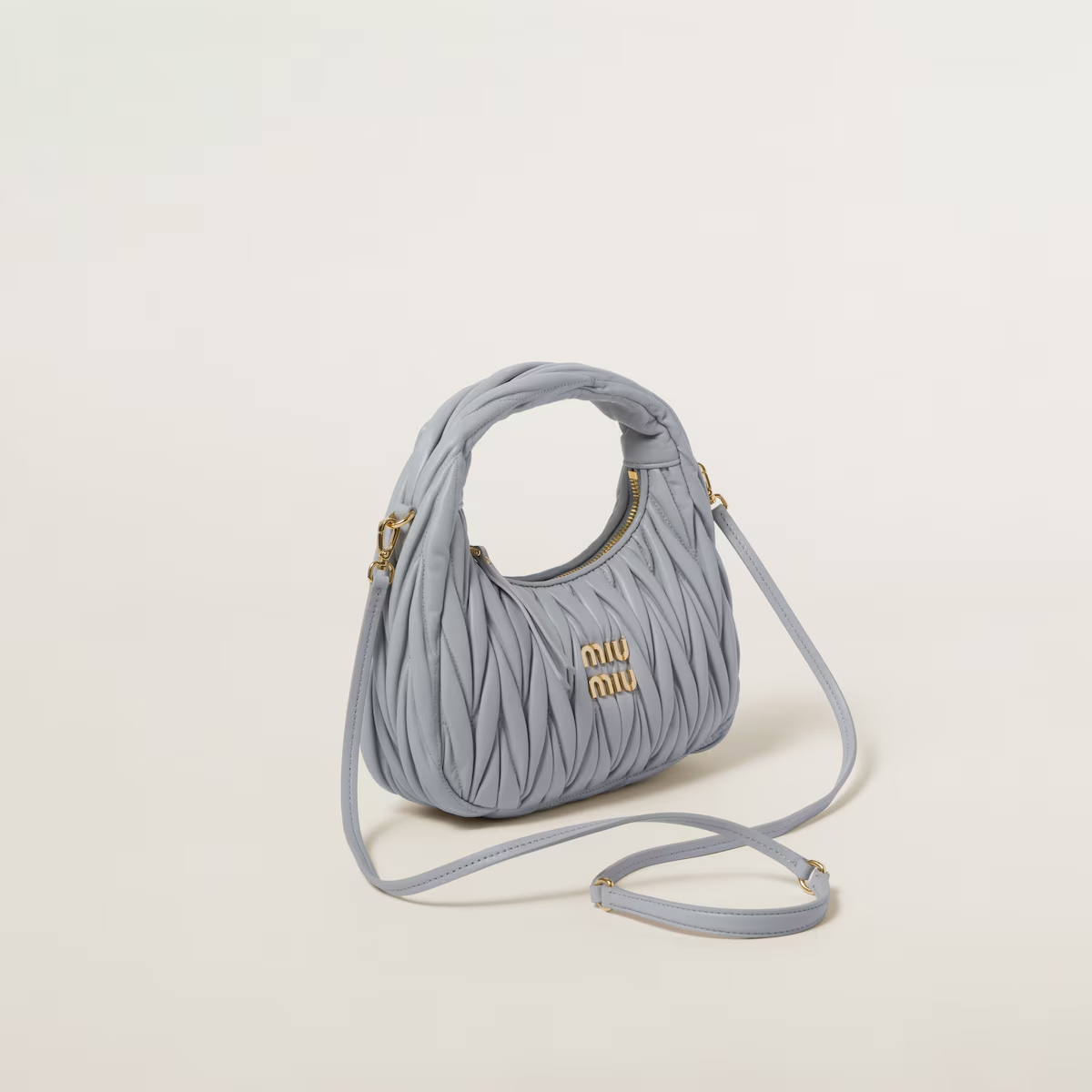• Miu Miu Wander Matelassé Quilted Lambskin Leather handbag Blue Crossbody Bags