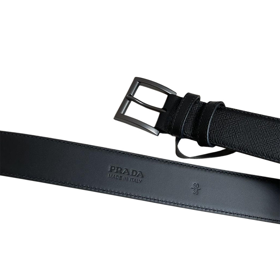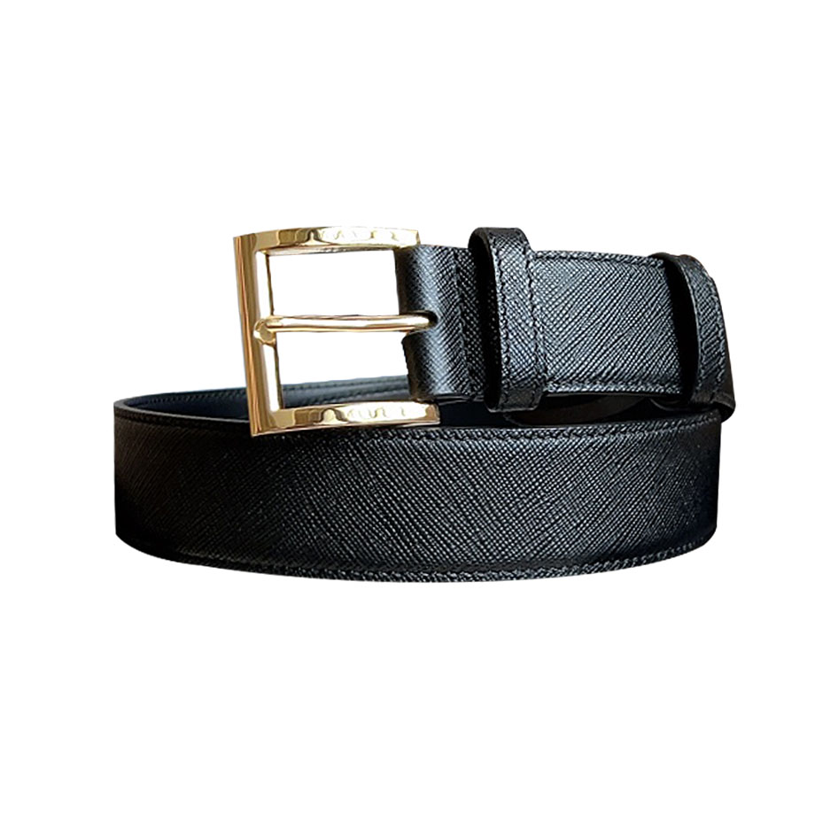 Prada Women’ s Square Buckle Belt In Black Calfskin With Gold/Silver/Gun Black Hardware 35mm