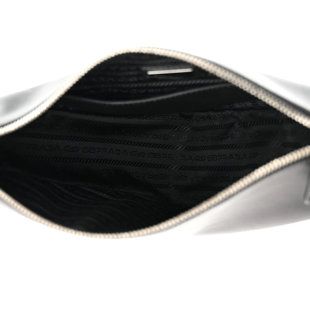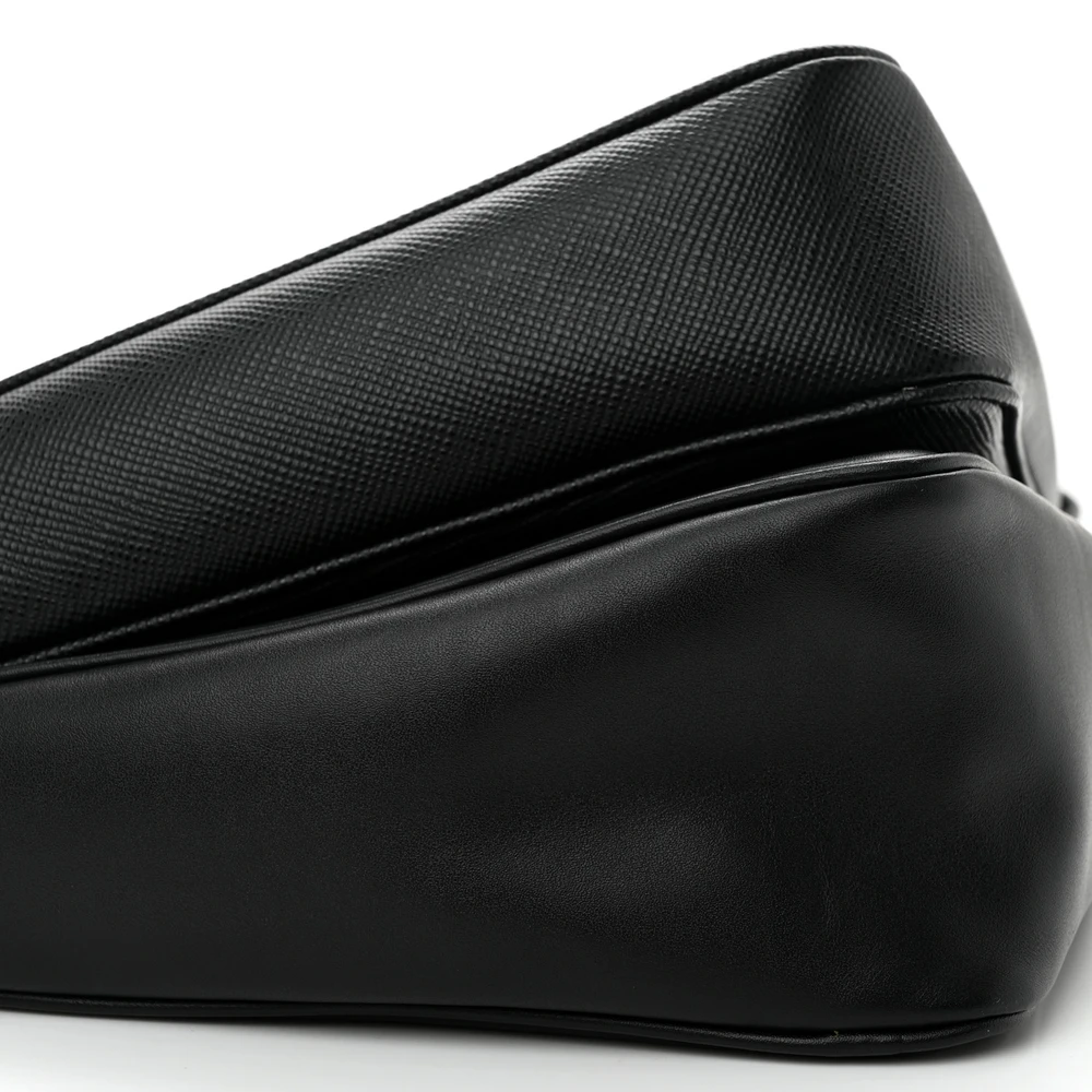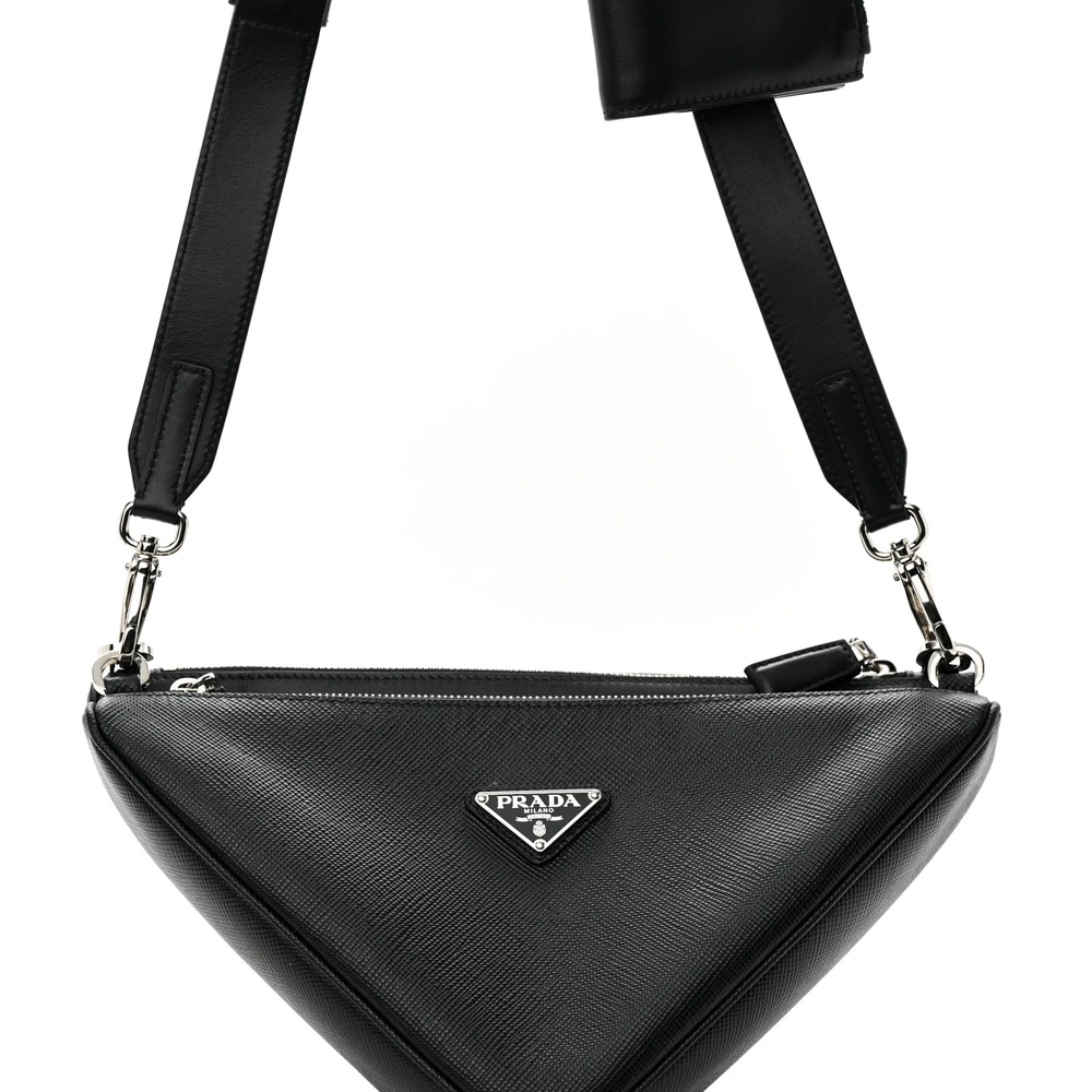 Prada Medium Double Triangle Shoulder Bag Black Vitello Saffiano Cuir Leather Silver Hardware
