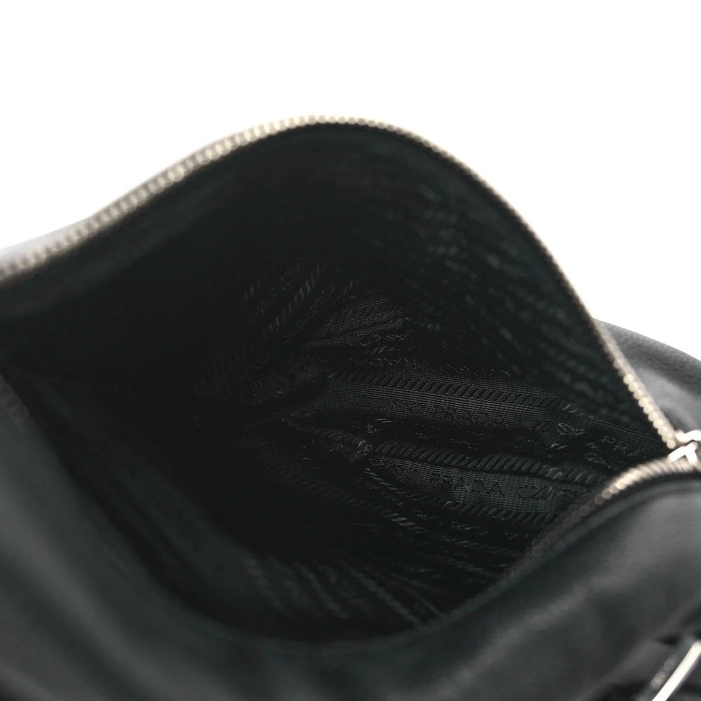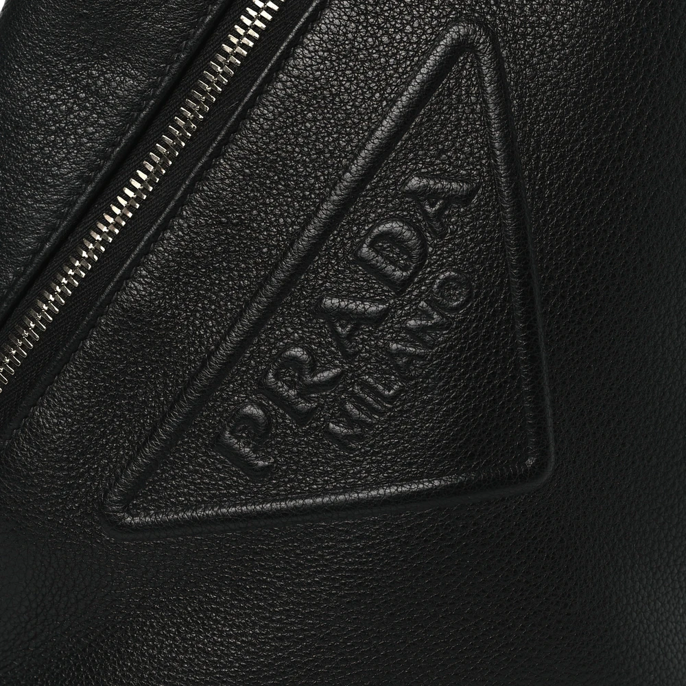Prada Medium Logo Embossed Cross Sling Backpack Black Vitello Daino Leather Silver Hardware