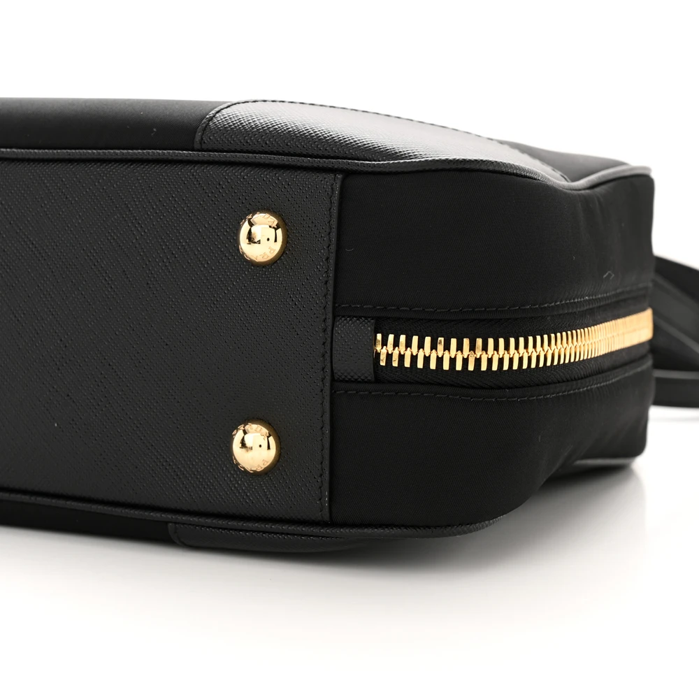 Prada Medium Re-Edition 1978 Two Handle Bag Black Re-Nylon & Saffiano Leather Gold Hardware