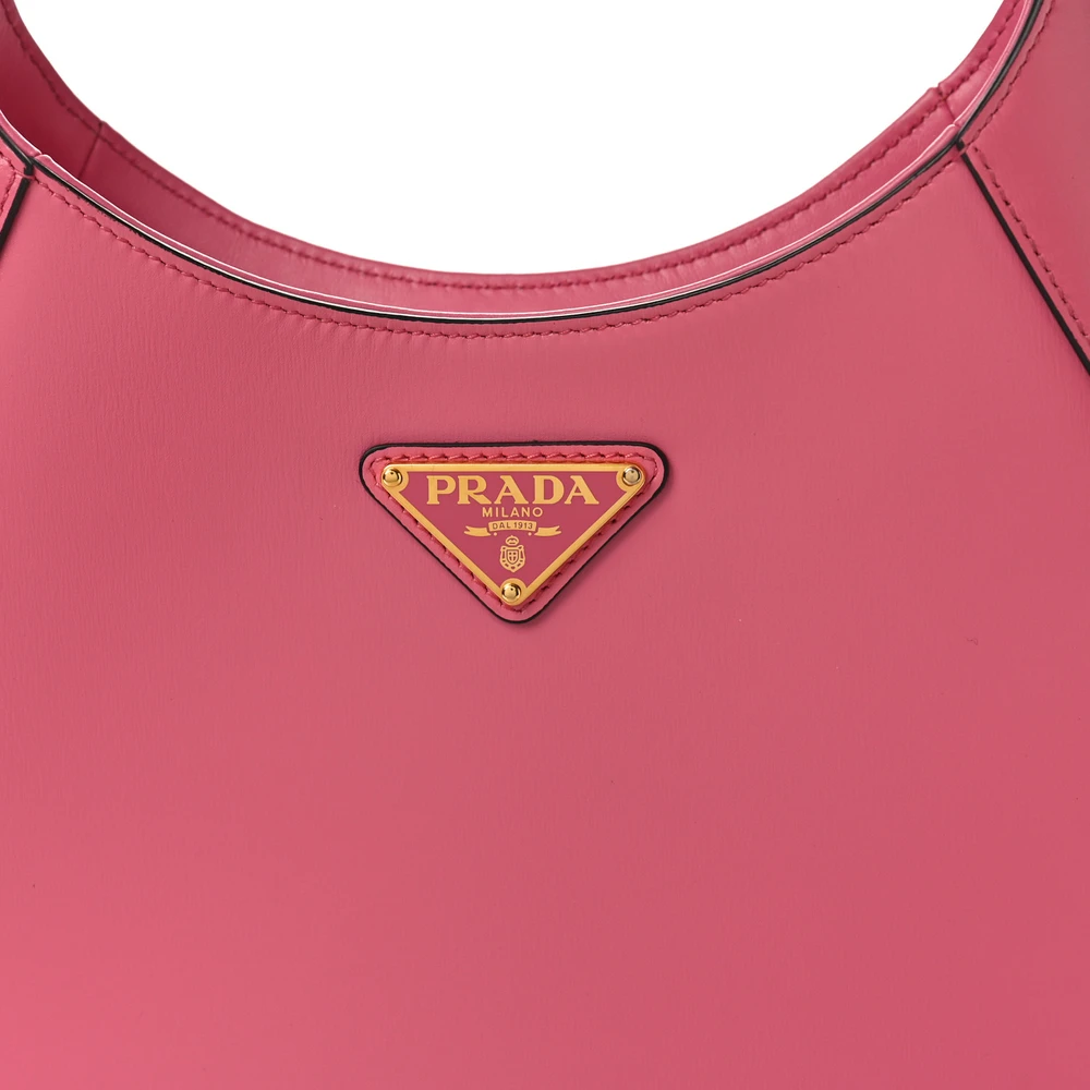 This Prada Medium Shoulder Bag in Pink is crafted from box calfskin leather. Gold hardware adds a touch of elegance. Spacious design for daily essentials. A chic color-blocked style for modern sophistication. Perfect for versatile styling. A bold and fashionable accessory.