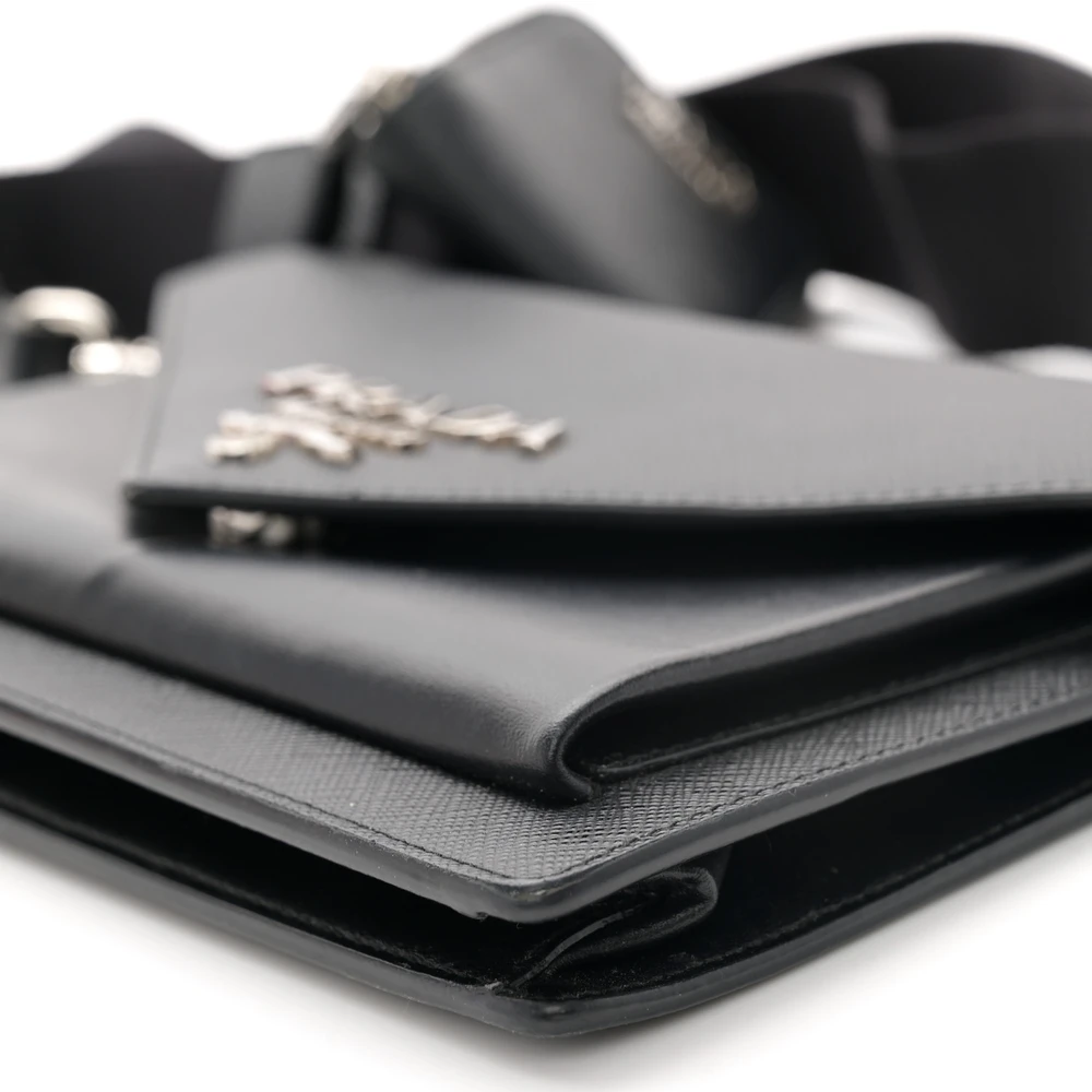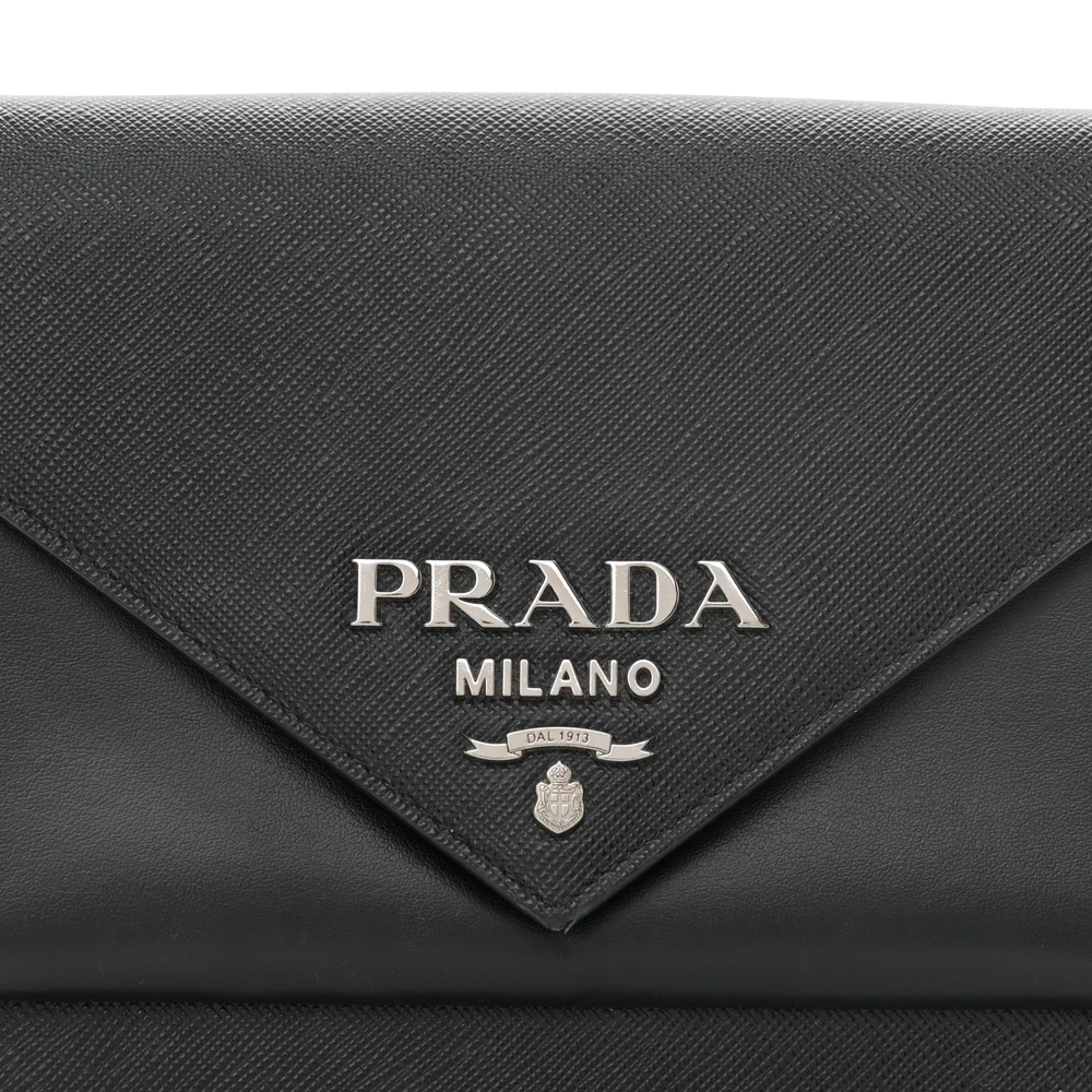 Prada Mini Envelope Bag Black Saffiano & City Calf Leather Silver Hardware