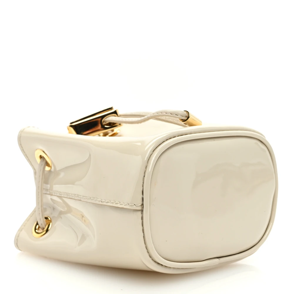 Prada Mini Metal Triangle Logo Drawcord Pouch Shoulder Bag Avorio Vernice Leather Gold Hardware