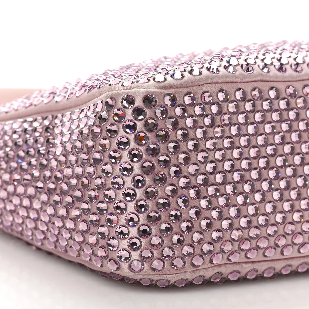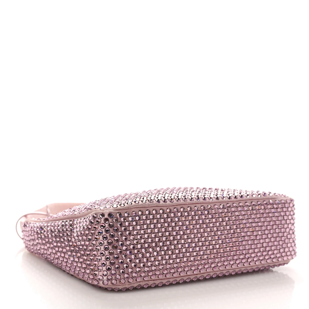 Prada Mini Re-Edition 2000 Bag Alabastro Satin & Crystal Silver Hardware