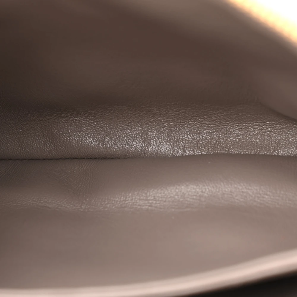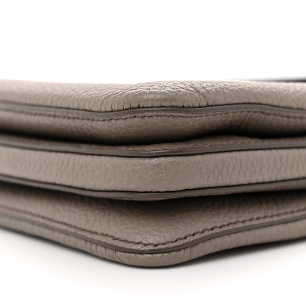 This Prada Mini Soft Zippered Shoulder Bag in Clay Grey is crafted from Vitello Daino leather. Gold hardware enhances its refined design. Compact yet spacious for essentials. Zipper closure ensures secure storage. Ideal for both day and evening use. A chic and versatile accessory.