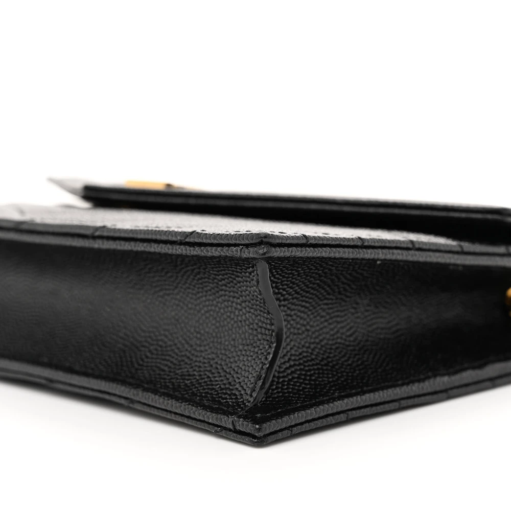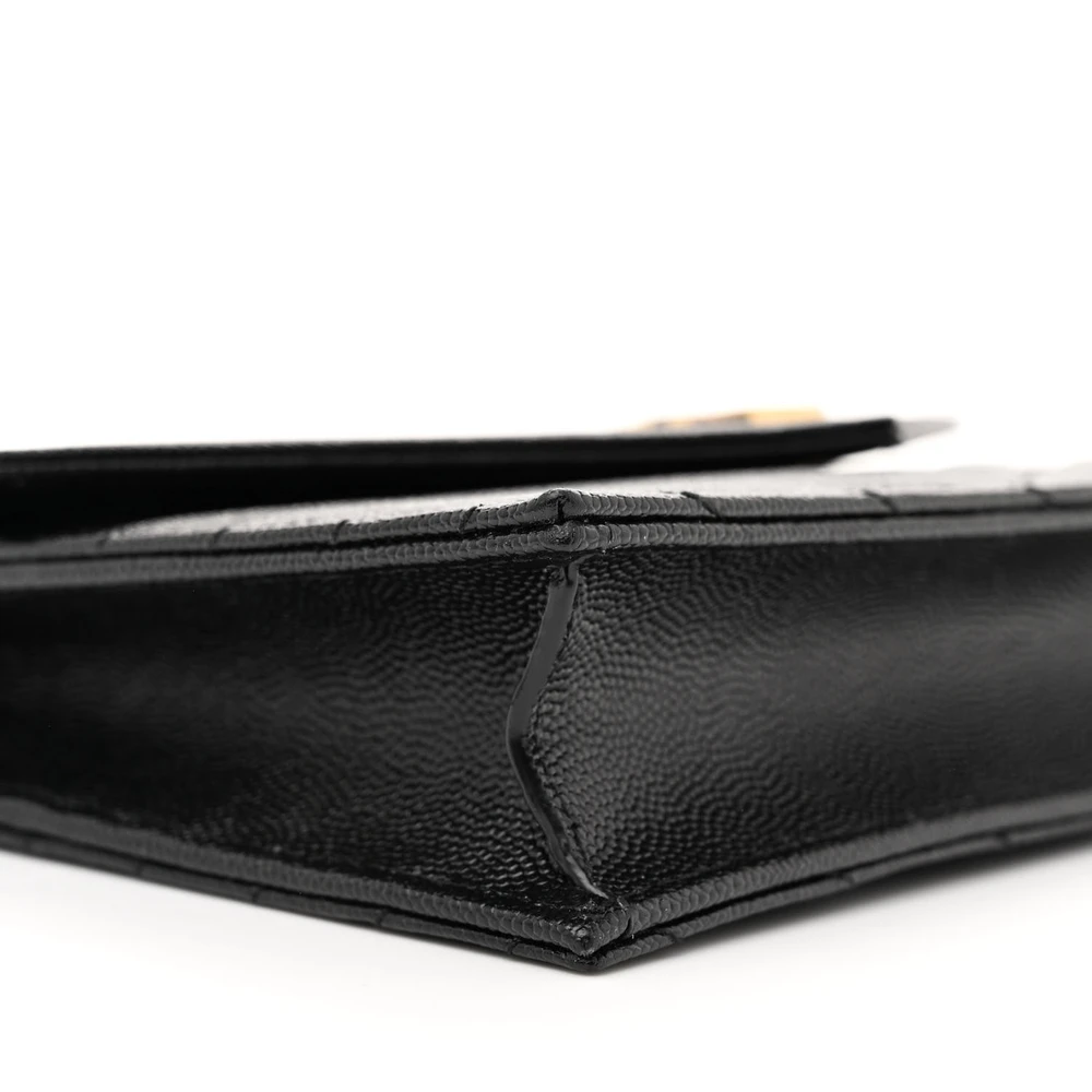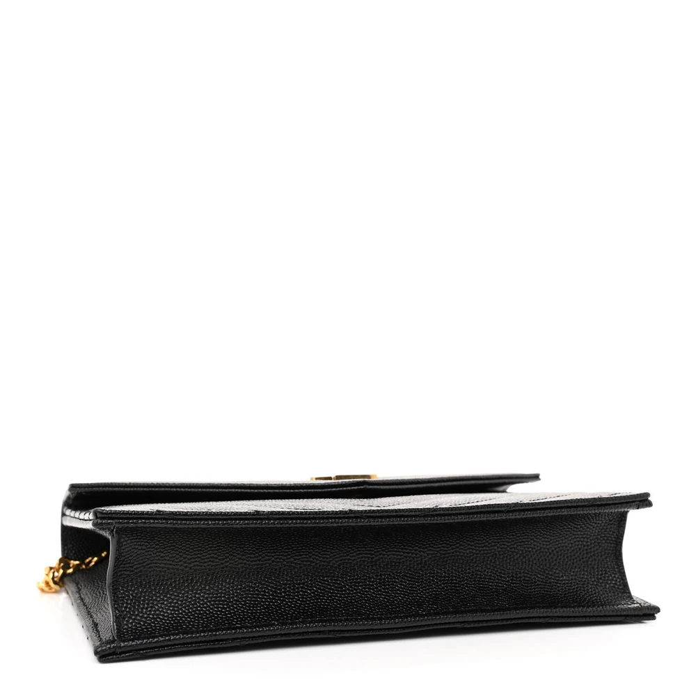 Saint Laurent Envelope Chain Wallet Black Chevron Monogram Grain De Poudre Matelasse Leather Gold Hardware