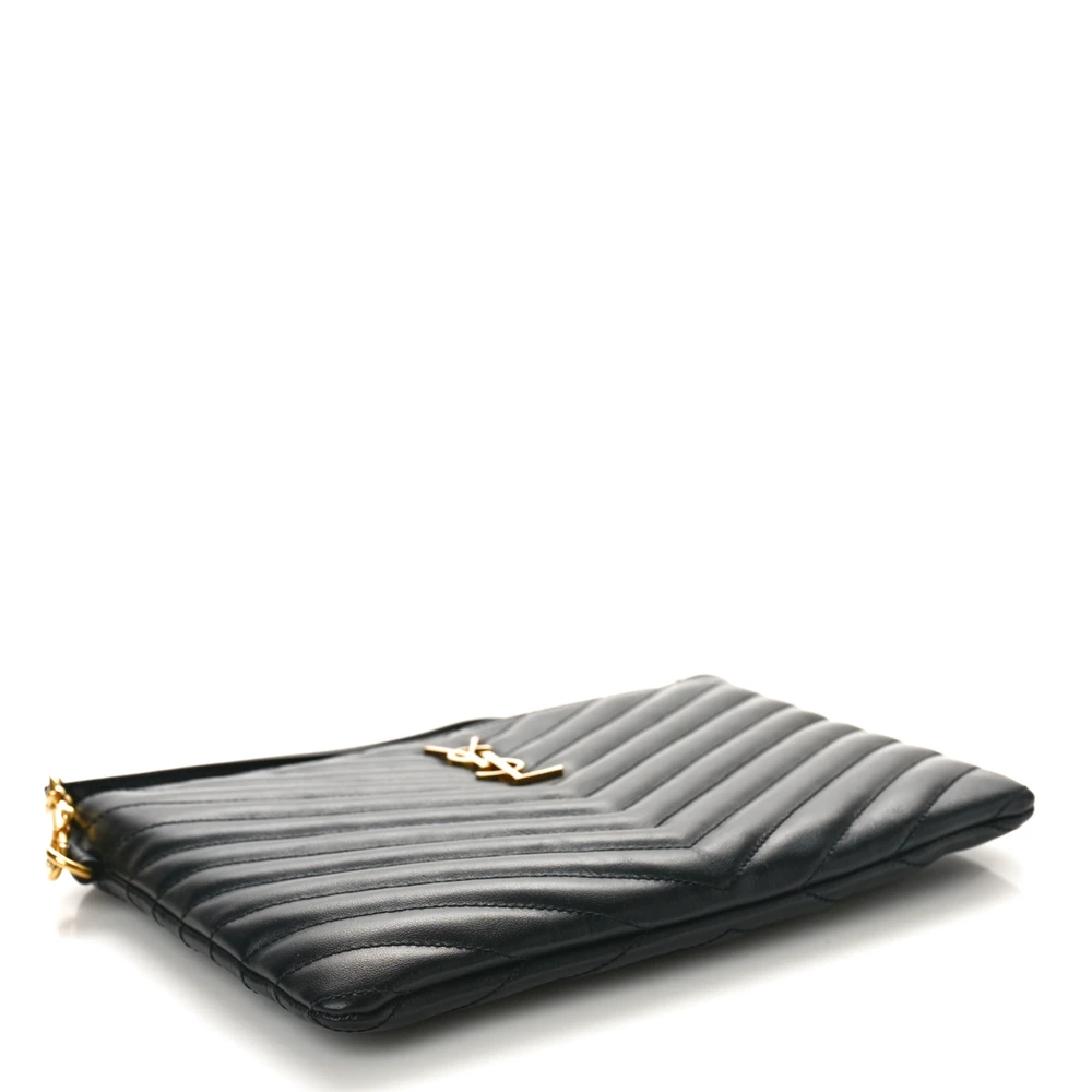 Saint Laurent Medium A5 Wristlet Black Chevron Monogram Calfskin Matelasse Leather Gold Hardware