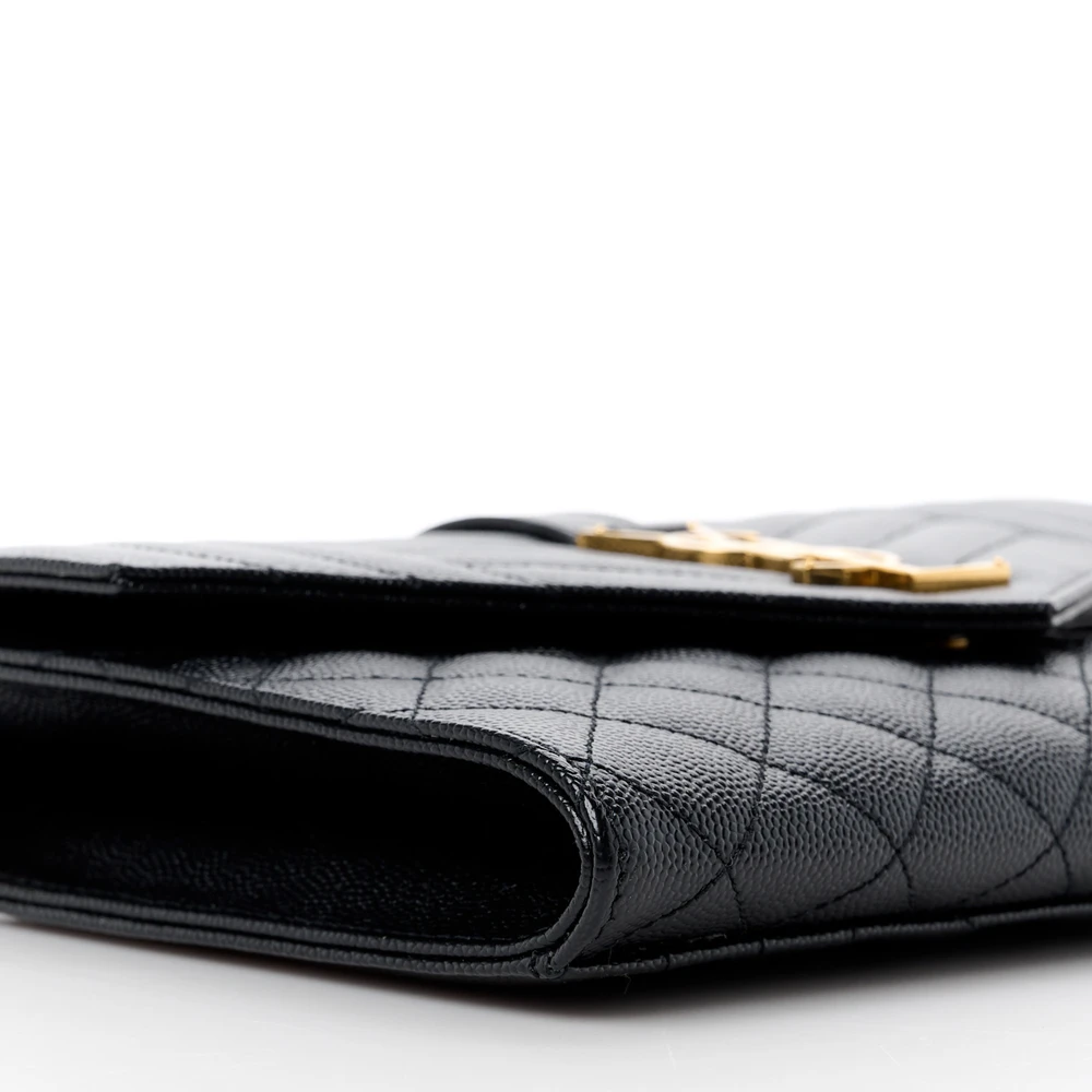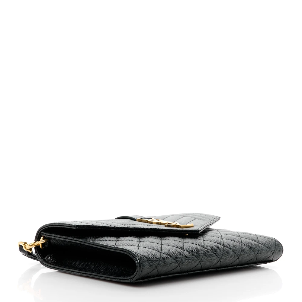 Saint Laurent Medium Clutch Black Triquilt Monogram Grain De Poudre Textured Mixed Matelasse Leather Gold Hardware